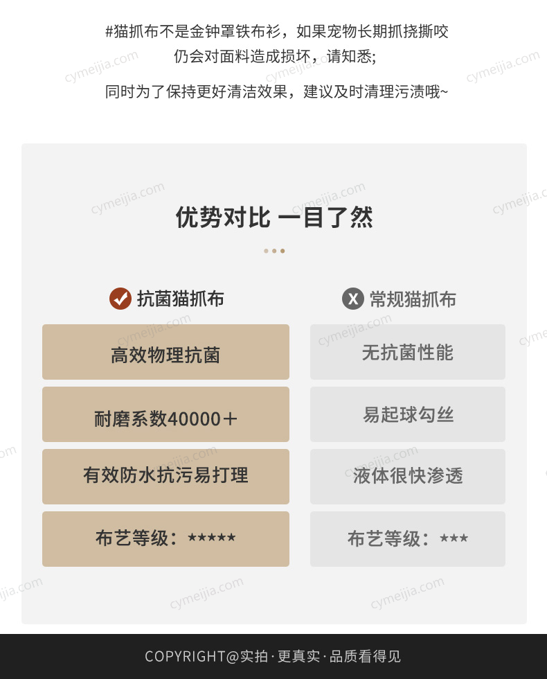 | 保养说明 : | 避免阳光长时间直射,以免造成产品局部褪色或泛黄,并保持使用环境清洁、干燥、通风,以免受潮。 |