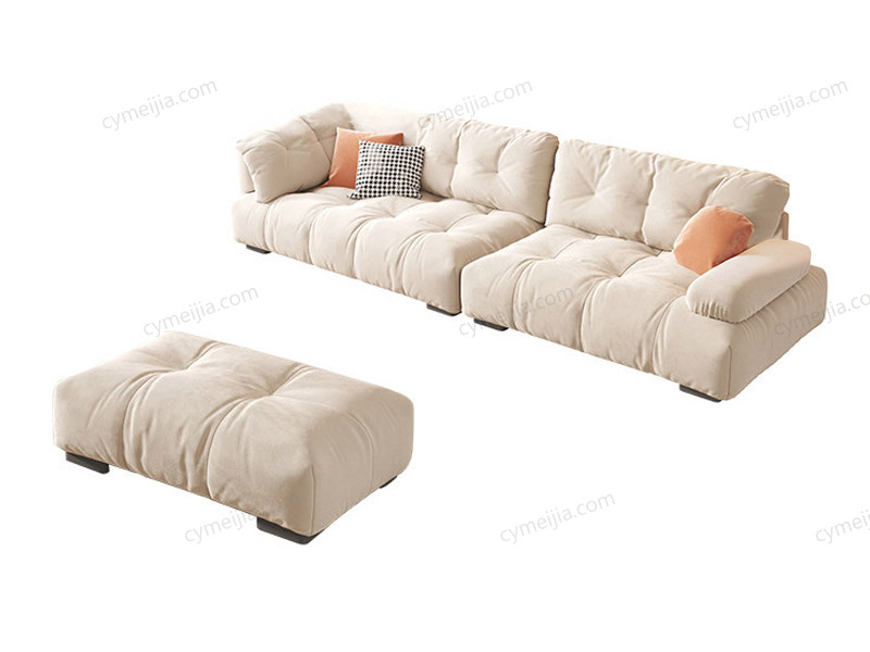 | 产品材质 : | 绒布+羽绒靠包/小抱枕+高密度海绵+俄罗斯落叶松实木框架+玫瑰桉+实木脚 |