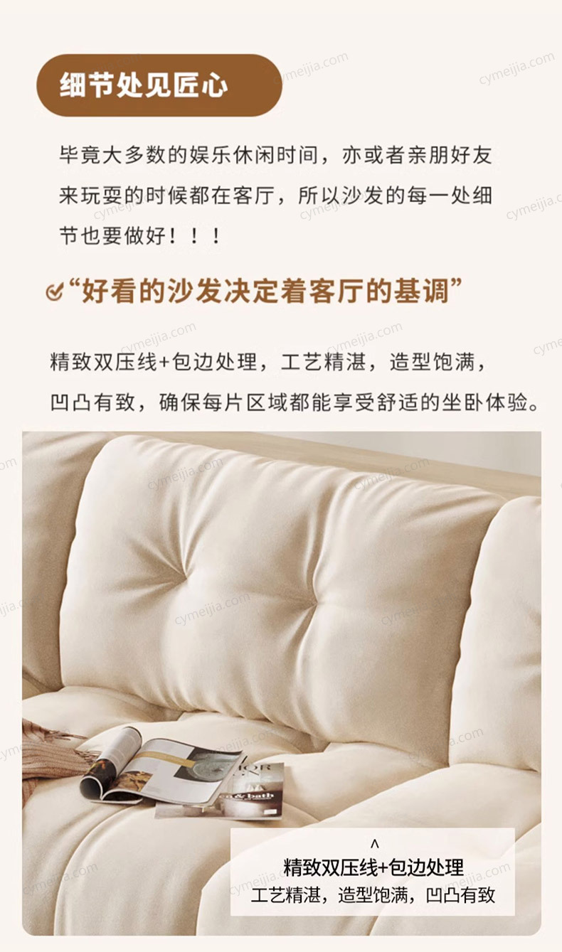 卡琪朵,一个充满活力与创新的家具品牌,以其独特的奶油风格和精致的工艺,让家居空间焕发出新的生机。我们的设计师们以家居美学为灵感源泉,将温馨、舒适和实用完美融合在每一件家具中,让每一个家庭都能享受到卡琪朵带来的优质生活体验。我们始终坚持以客户为中心,提供优质的服务和产品,让每一位客户都能在卡琪朵的陪伴下,享受到更活泼生动的生活。
