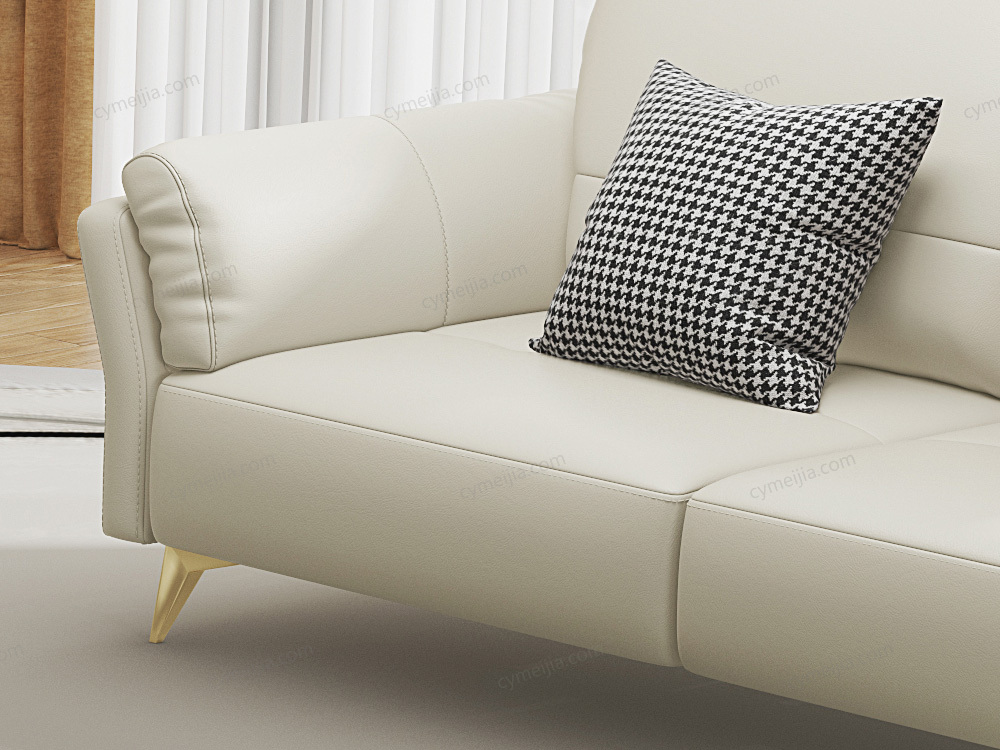 | 产品材质 : | 接触面进口头层黄牛皮+3A公仔棉靠包+高密度海绵+四面刨光桉木方加松木方+进口4.0蛇形弹簧+加宽橡筋 |