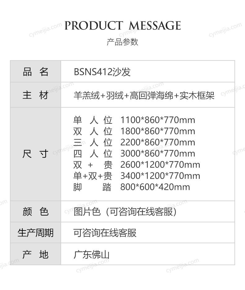 | 产品材质 : | 羊羔绒+羽绒+高密度海绵+俄罗斯落叶松实木框架 |