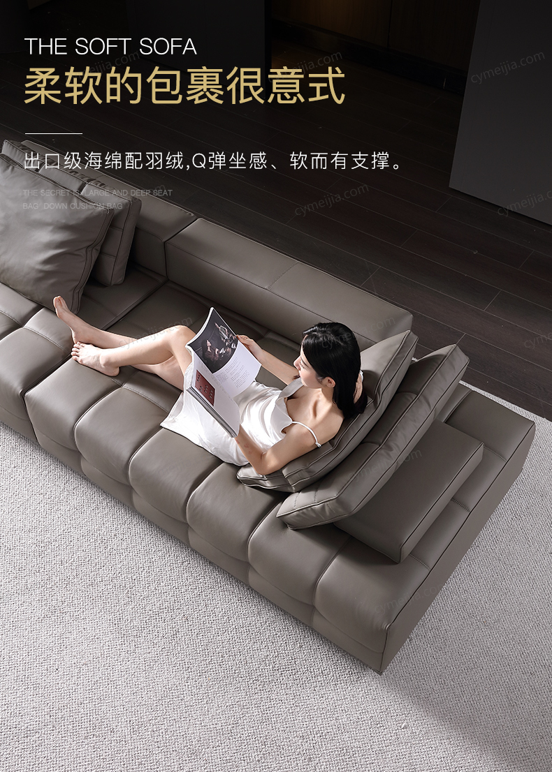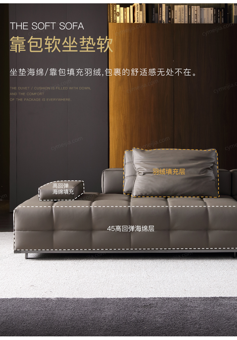 | 产品材质 : 全真皮(进口头层黄牛皮)+羽绒靠包+高密度海绵+俄罗斯落叶松实木框架+拉丝不锈钢底架 | 包件数 : 2 | 包装体积(m3) : 2.64 | |