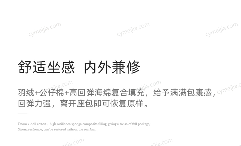 | 产品材质 : | 双面磨砂布+优质白鹅绒+高密度海绵+俄罗斯落叶松实木框架 |