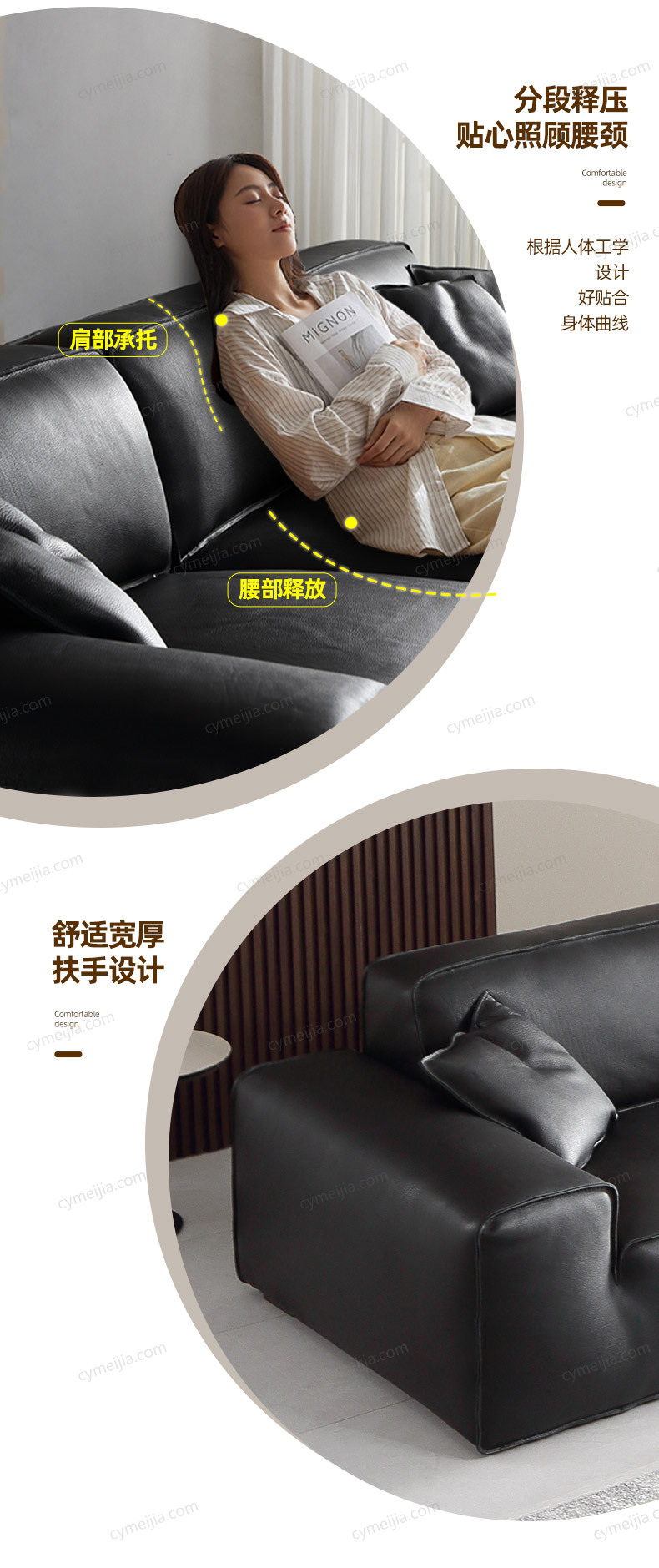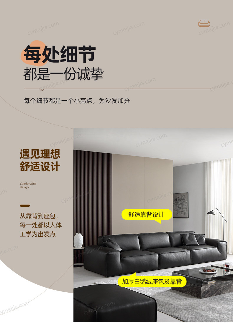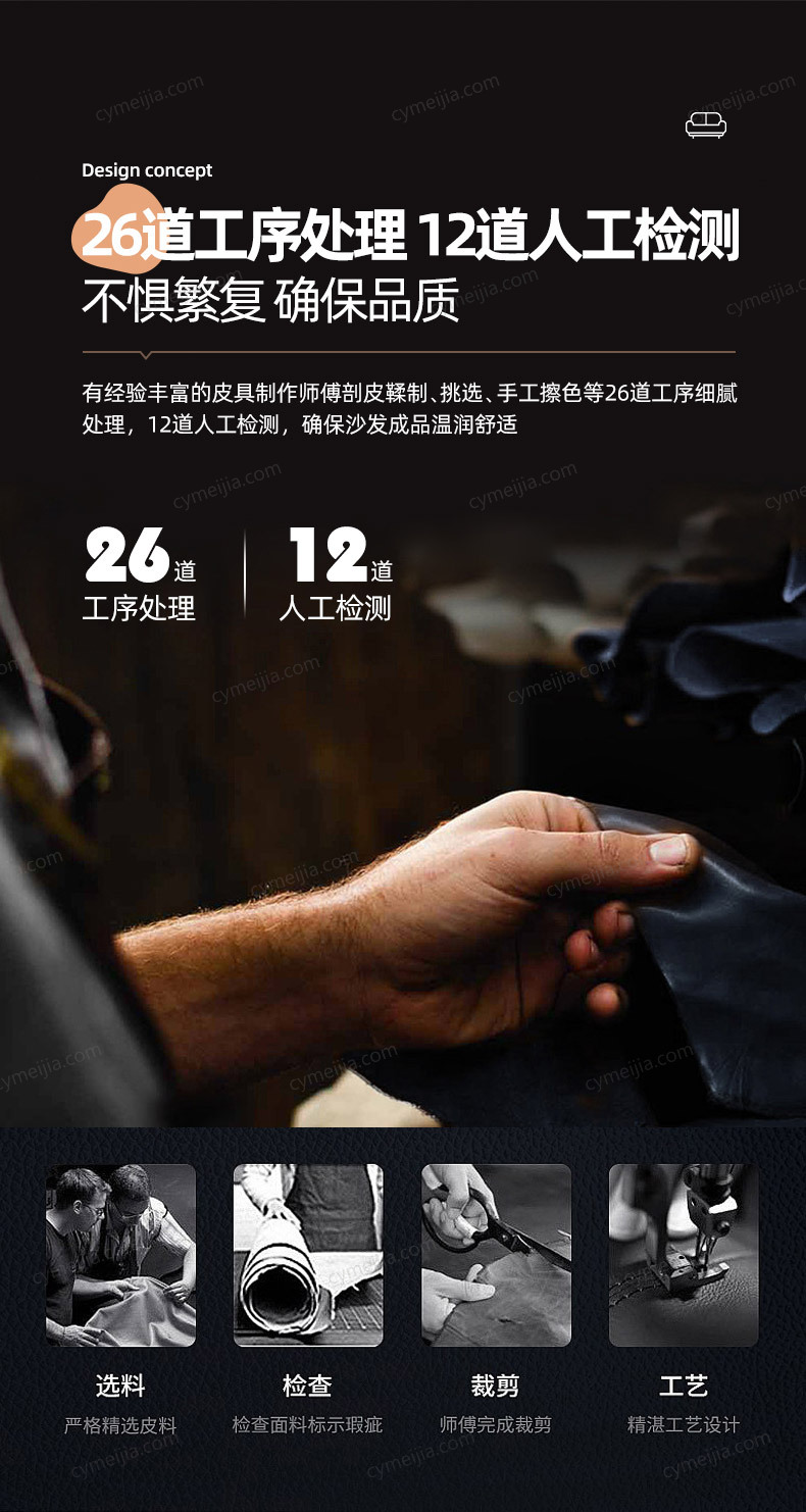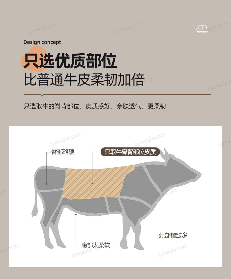 ☀ 全皮奢配:进口欧洲TOP级头层黄牛皮,整张牛皮大面积覆盖,从正面、侧面、背面到扶手、每一寸触感都是实打实的头层牛皮。