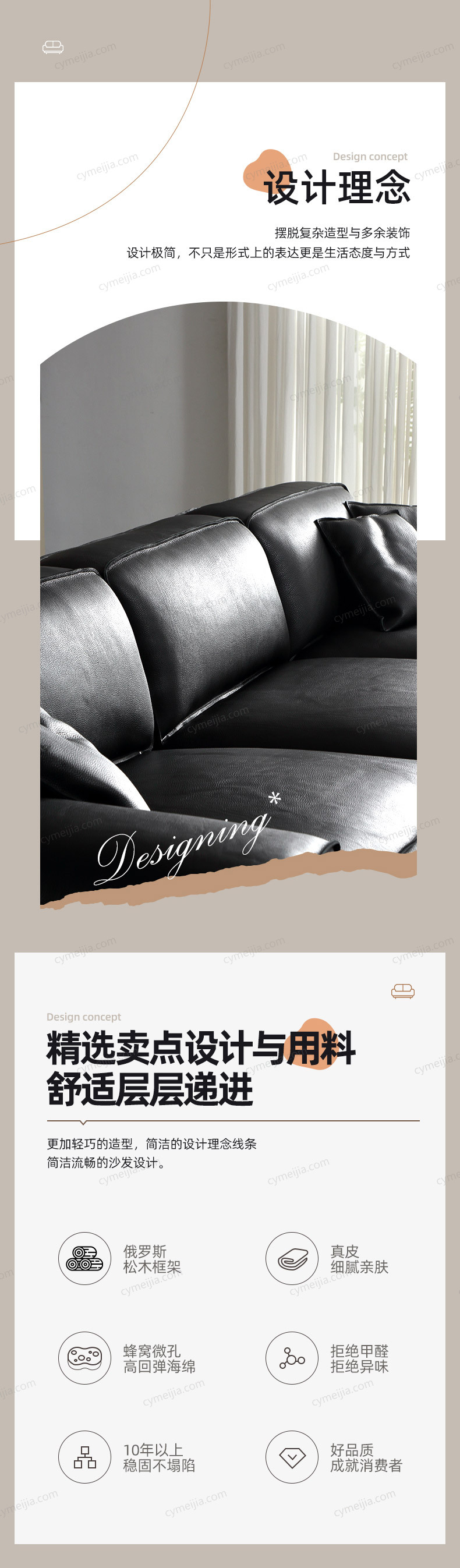 | 产品材质 : | 全真皮(进口头层黄牛皮)+羽绒+高密度海绵+俄罗斯落叶松实木框架 |