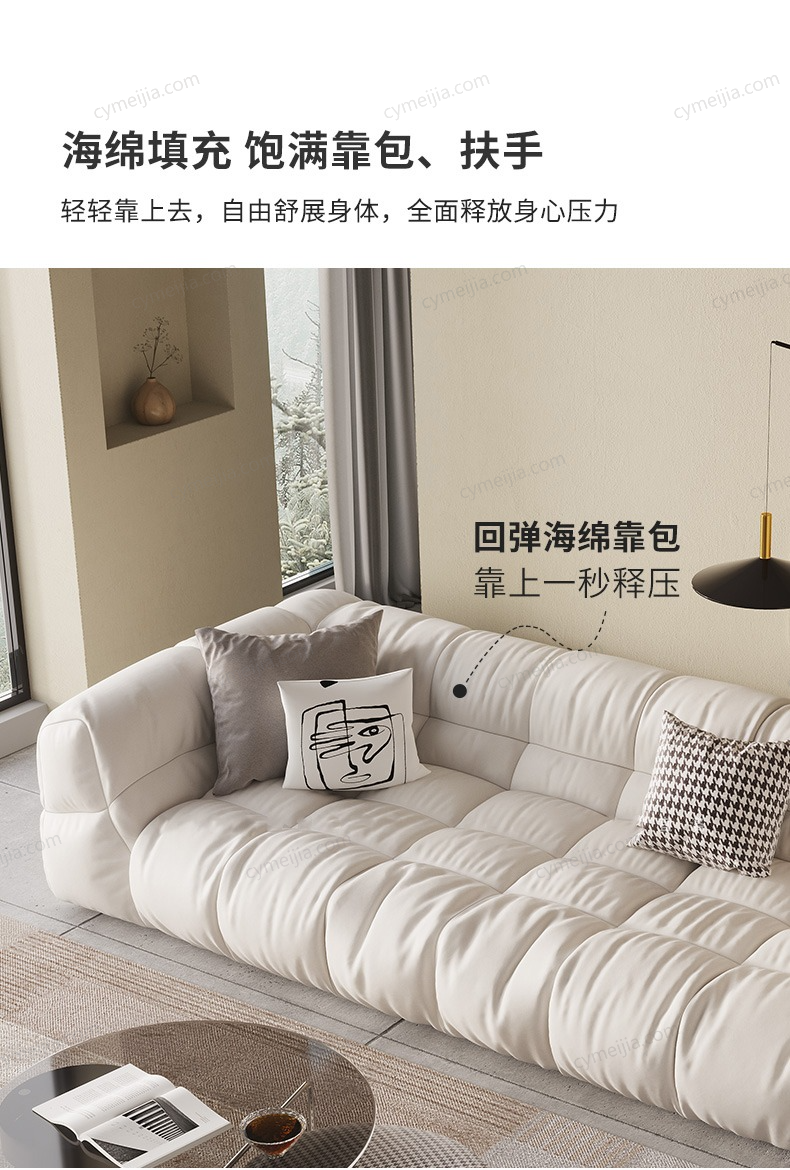 | 产品材质 : | 接触面进口头层黄牛皮+羽绒填充+高密度海绵+实木框架 |
