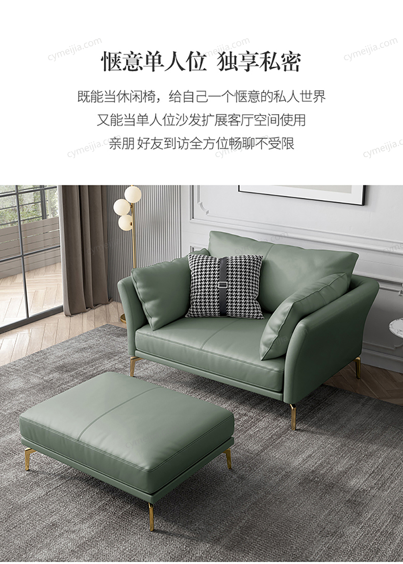 | 产品材质 : | 接触面进口头层黄牛皮+羽绒+高密度海绵+俄罗斯落叶松实木框架+不锈钢镀金脚 |