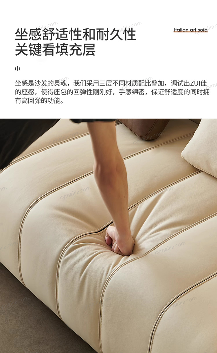 | 产品材质 : | 接触面进口头层黄牛皮+羽绒靠包+高密度海绵+俄罗斯落叶松实木框架+不锈钢五金底座 |