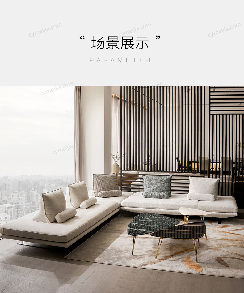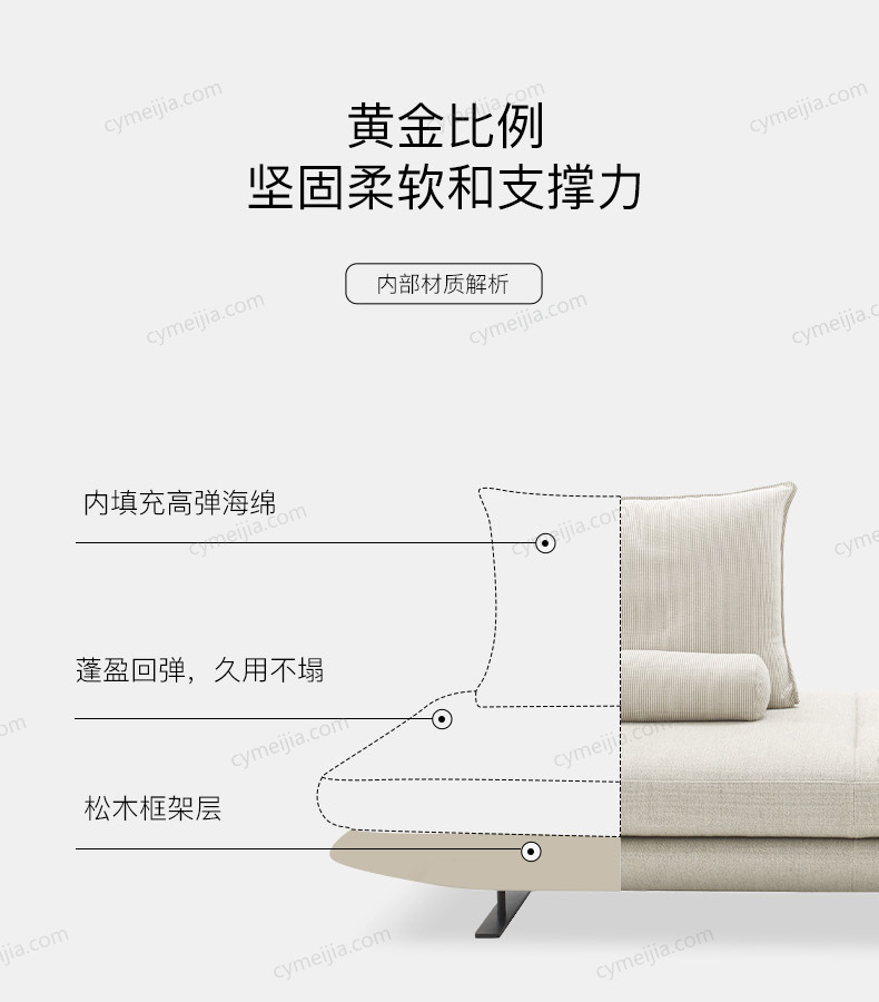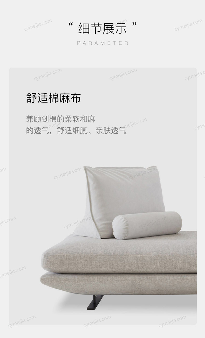 | 产品材质 : | 棉麻+高密度海绵+定型棉+俄罗斯落叶松实木框架+五金脚 |