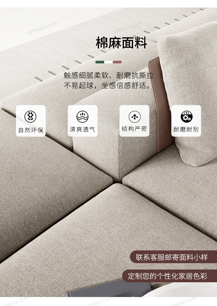 | 产品材质 : | 高档棉麻+高密度海绵+俄罗斯落叶松实木框架 |