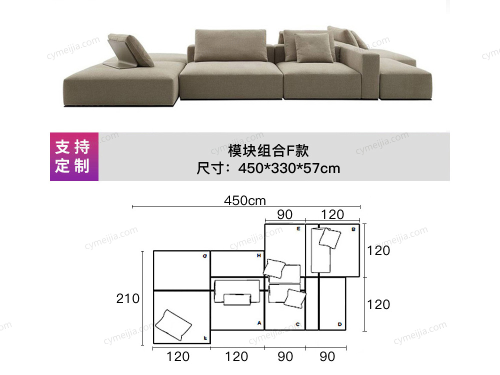 | 产品包含 : | 正方形脚踏*1:长1200*宽1200*高380mm;正方形无扶手单人位*2:长1200*宽1200*高570mm;长方形无扶手单人位*1:长900*宽1200*高570mm;长方形无扶手单人位*1:长1200*宽900*高570mm;宽脚踏*2:长1200*宽900*高380mm;长脚踏*1:长1200*宽600*高380mm;钢板靠包*1 |