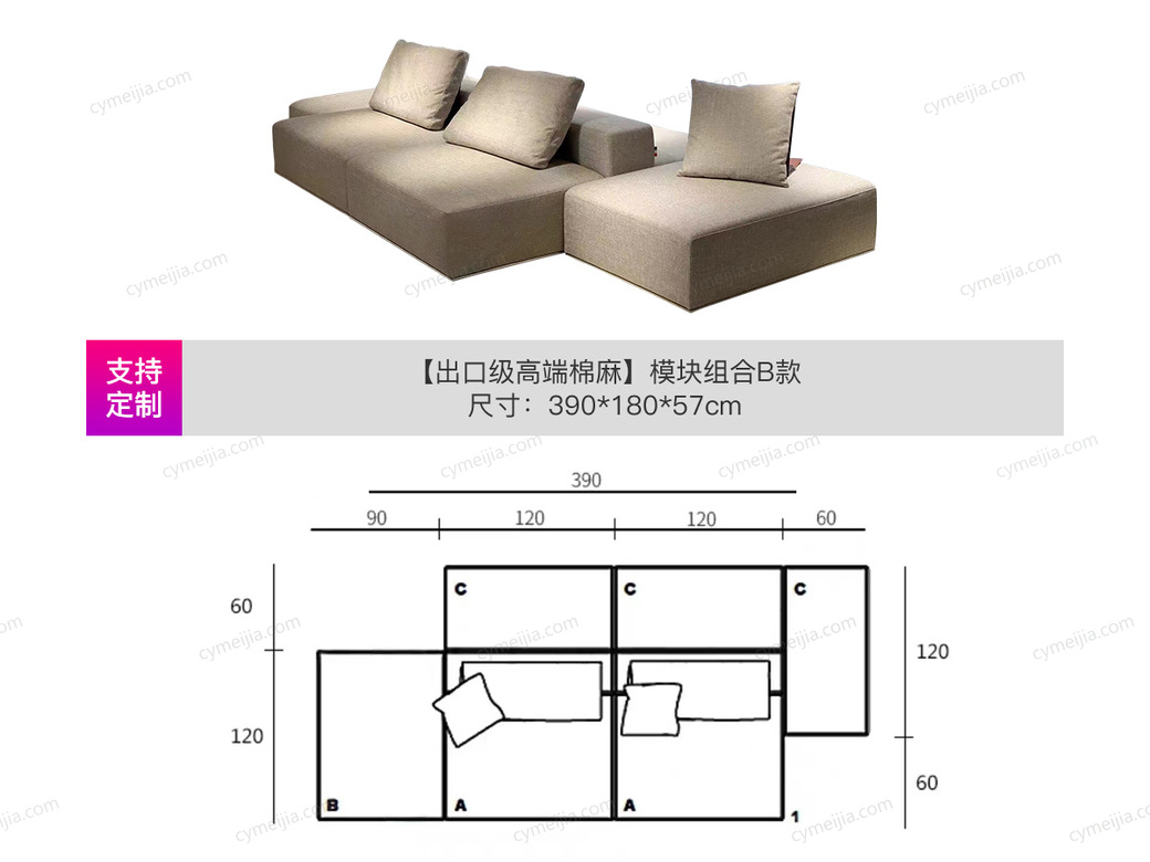 | 产地 : 佛山 | 尺寸 : 长3900*宽1800*高570mm | 沙发类型 : 沙发组合 | 更多参数>> |