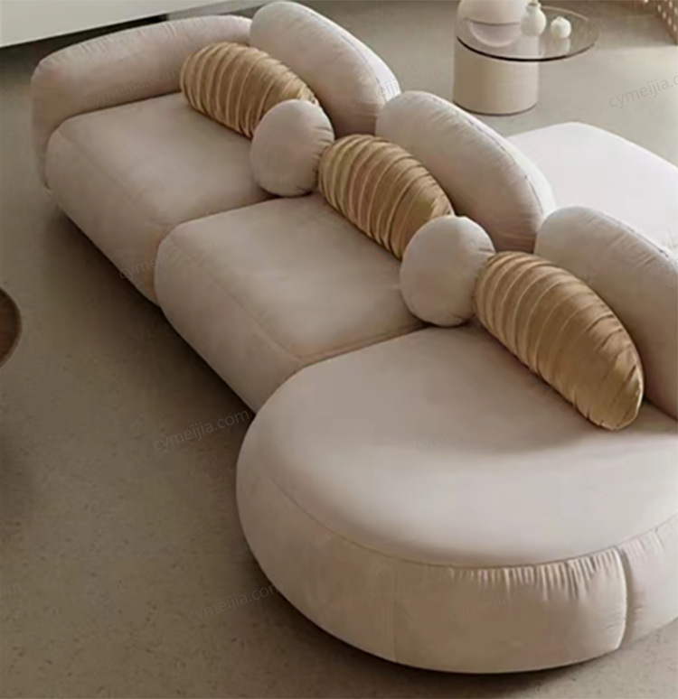 | 产品材质 : | 绒布+羽绒内芯+海绵+俄罗斯落叶松实木框架+玫瑰桉+5分钛黑圆脚 |