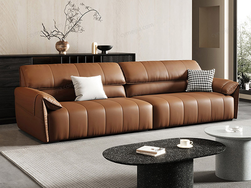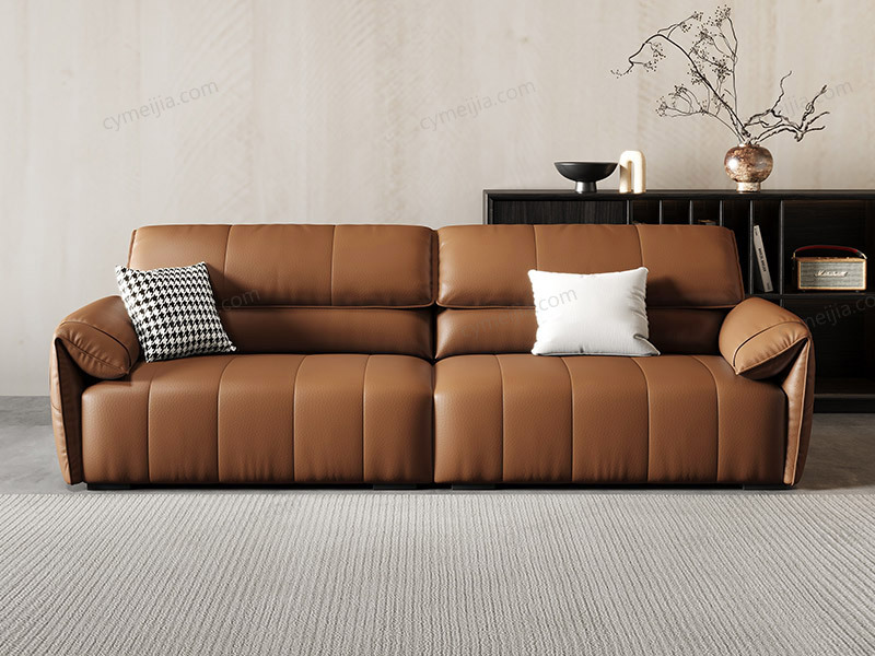 | 产品材质 : | 接触面进口头层黄牛皮+羽绒头枕/扶手包+高密度海绵+四面刨光桉木方加松木方+进口4.0蛇形弹簧+加宽橡筋 |