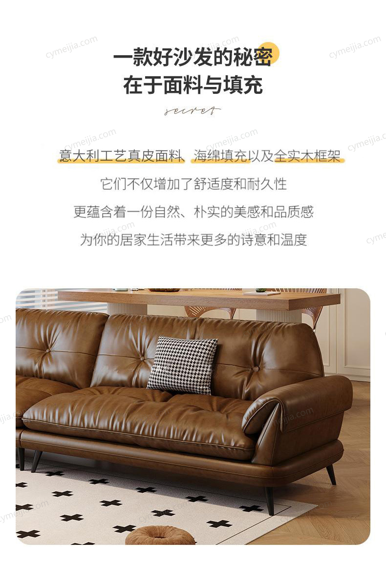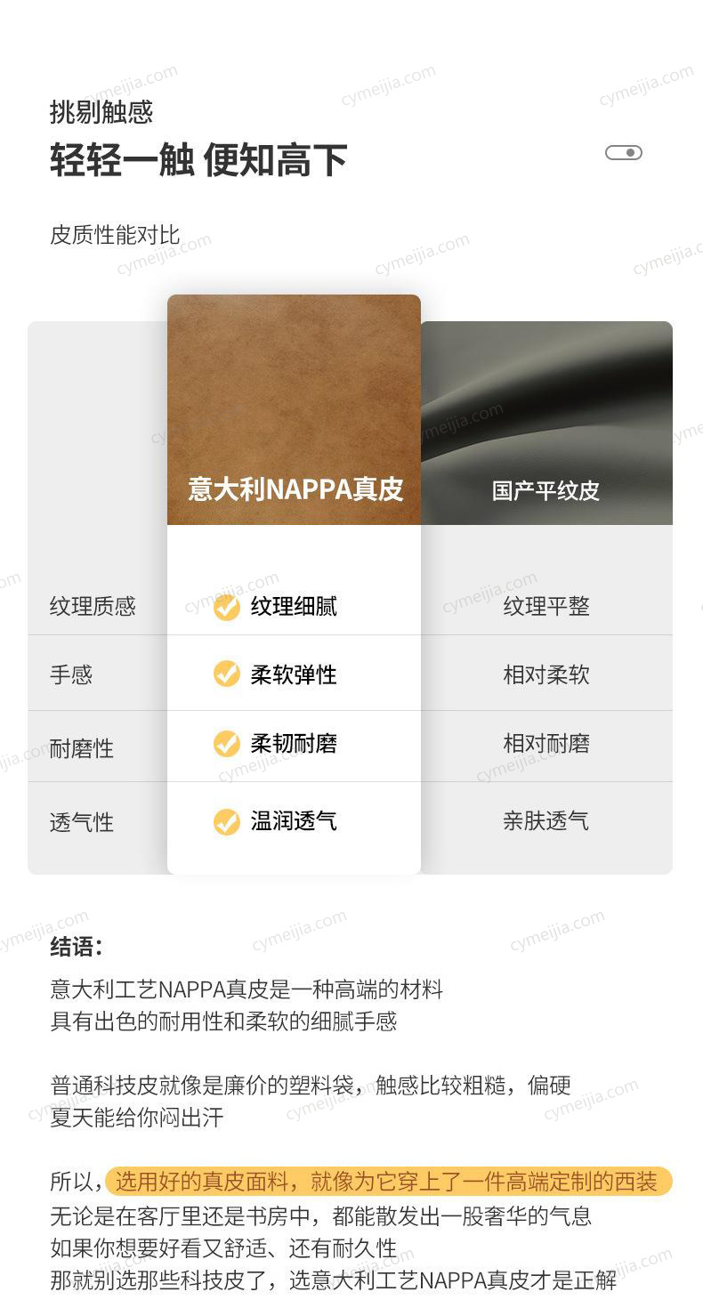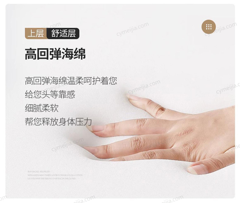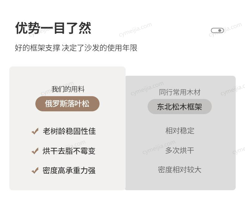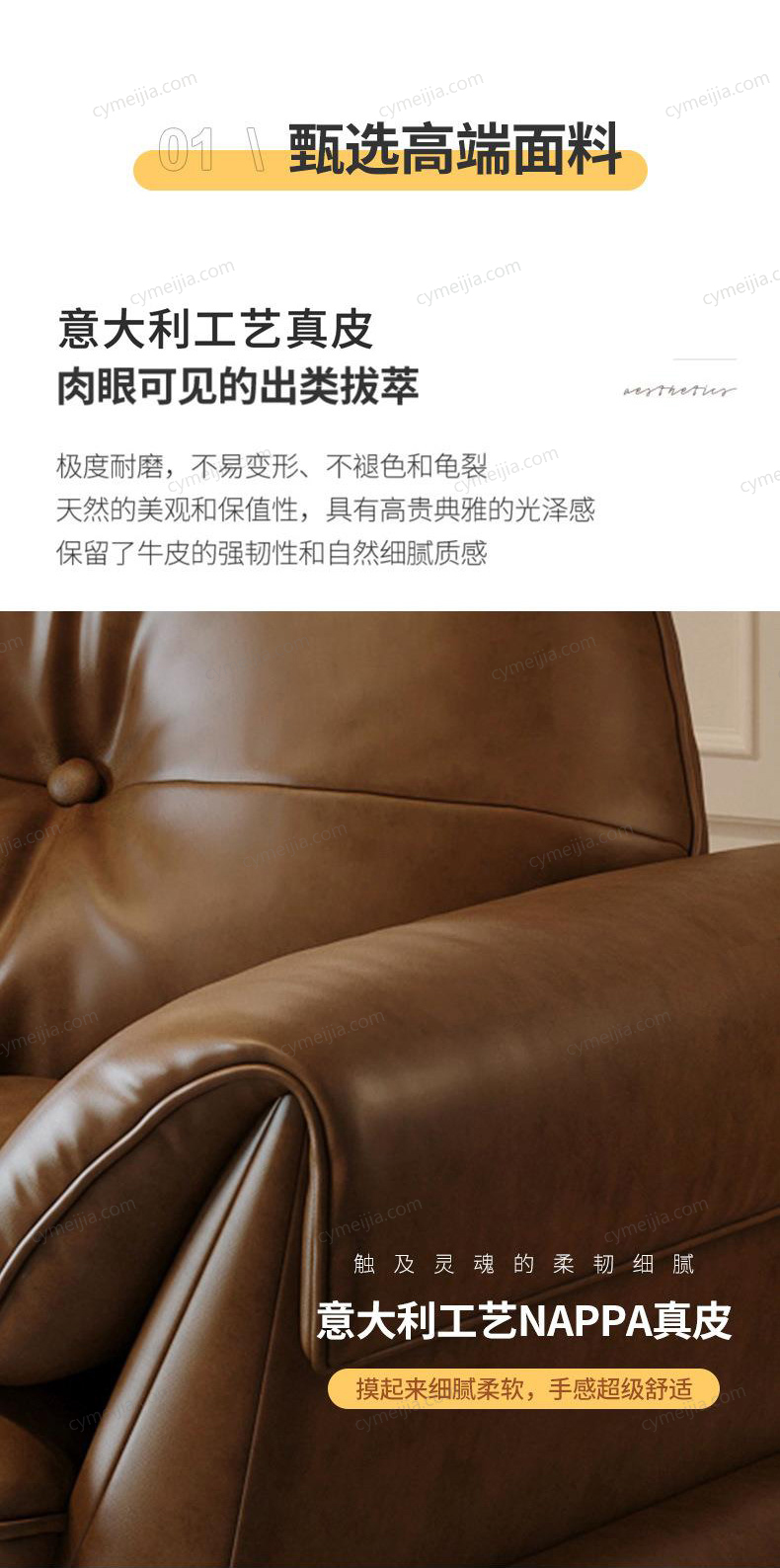 | 产品材质 : | 仿真皮+羽绒抱枕+高密无粉回弹海绵+俄罗斯落叶松实木框架+4.0金色蛇形全拱弹簧+五金脚 |
