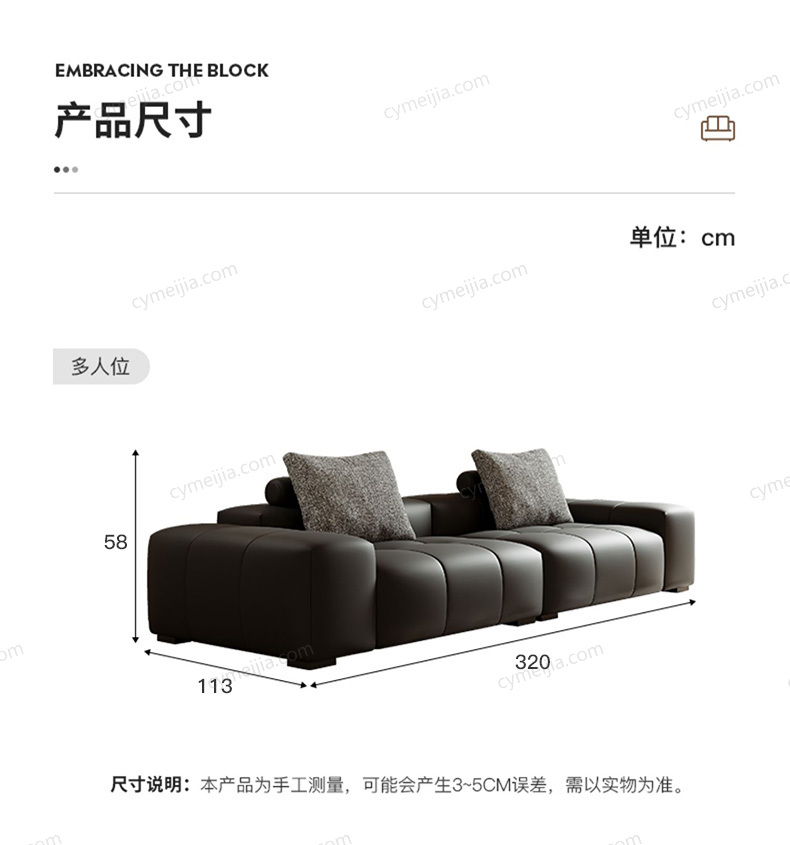 | 产地 : 佛山 | 尺寸 : 长3200*宽1130*高580mm | 沙发类型 : 五人沙发 | 更多参数>> |