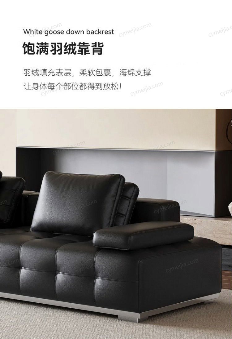 | 产品材质 : | 全真皮(进口头层黄牛皮)+羽绒+高密度海绵+俄罗斯落叶松实木框架+不锈钢底架 |