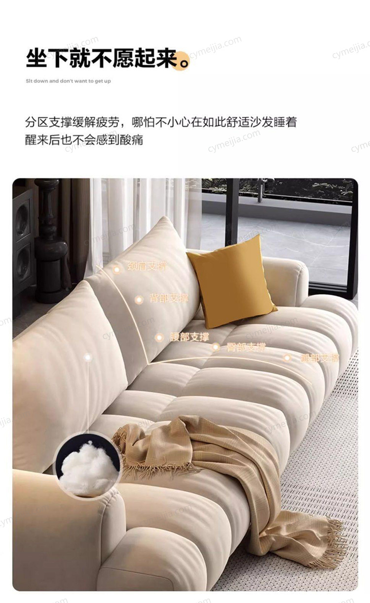 | 产品材质 : | 牛奶绒+落叶松实木框架+紫罗兰海绵+实木脚 |