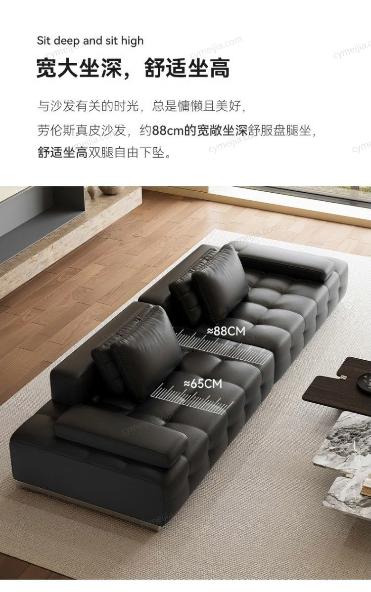| 产品材质 : 全真皮(进口头层黄牛皮)+羽绒+高密度海绵+俄罗斯落叶松实木框架+不锈钢底架 | 包件数 : 2 | 包装体积(m3) : 2.22 | |