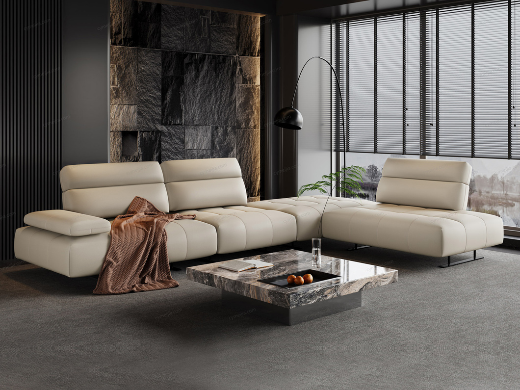 | 产品材质 : | 全真皮(进口头层黄牛皮)+羽绒靠包+高密度海绵+俄罗斯落叶松实木框架+15公分碳素钢脚 |