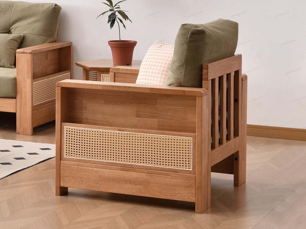 | 产品材质 : | 麂皮绒+橡胶木+海绵+藤编 |