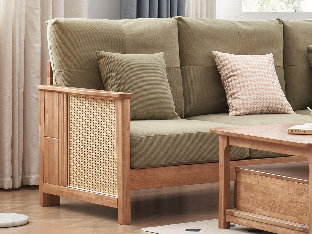 | 产品材质 : | 麂皮绒+橡胶木+海绵+藤编 |