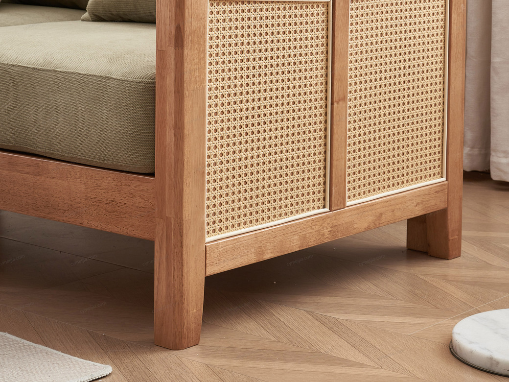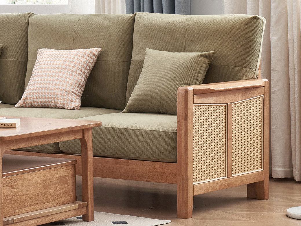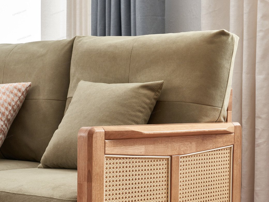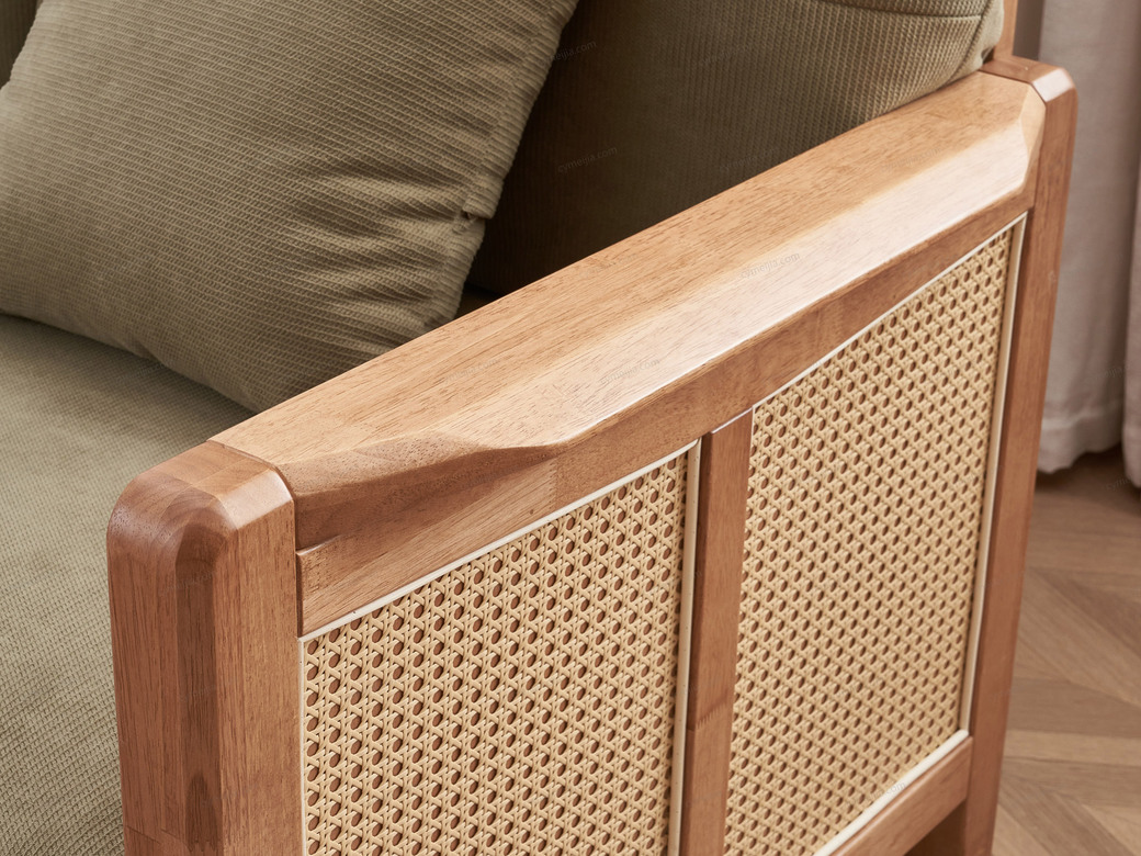 | 产品材质 : | 麂皮绒+橡胶木+海绵+藤编 |