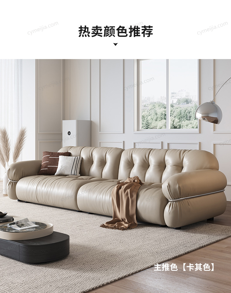 | 产品材质 : 接触面进口头层黄牛皮+高密度海绵+俄罗斯落叶松实木框架+不锈钢五金件 | 包件数 : 3 | 包装体积(m3) : 1.92 | |