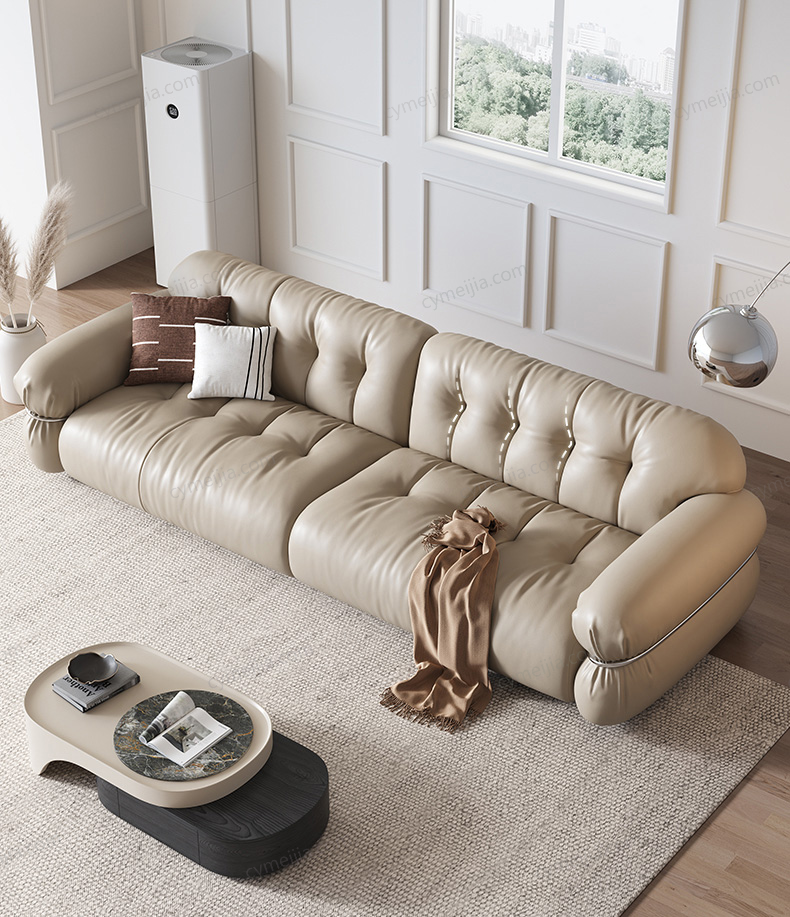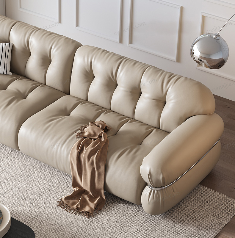 | 产品材质 : 接触面进口头层黄牛皮+高密度海绵+俄罗斯落叶松实木框架+不锈钢五金件 | 包件数 : 3 | 包装体积(m3) : 2.40 | |