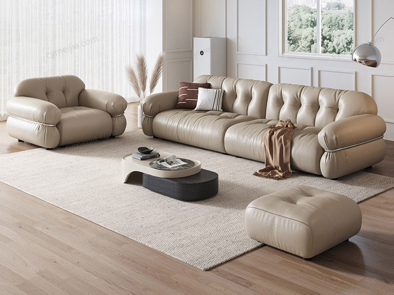 | 产品材质 : | 接触面进口头层黄牛皮+高密度海绵+俄罗斯落叶松实木框架+不锈钢五金件 |