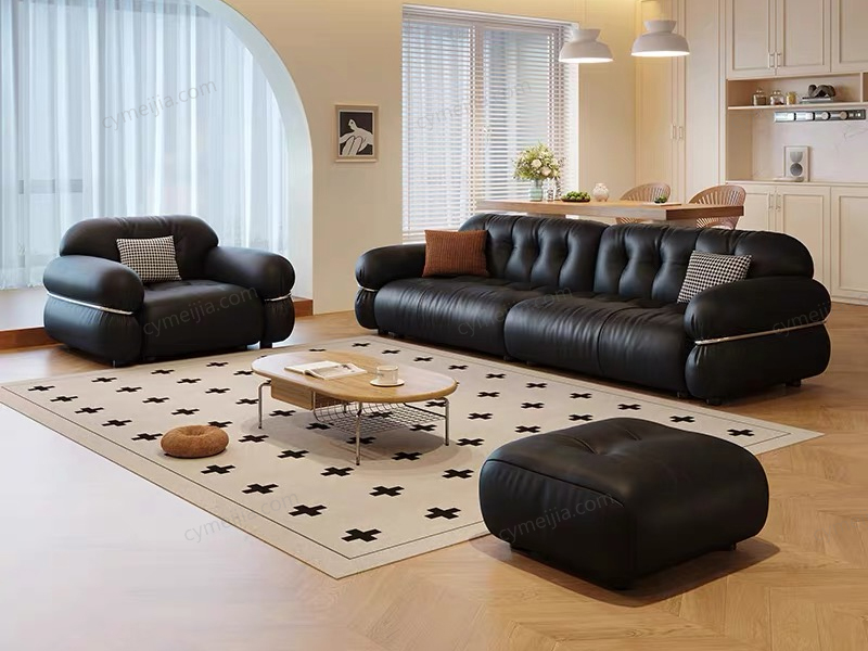 | 产品材质 : 接触面进口头层黄牛皮+高密度海绵+俄罗斯落叶松实木框架+不锈钢五金件 | 包件数 : 4 | 包装体积(m3) : 3.00 | |