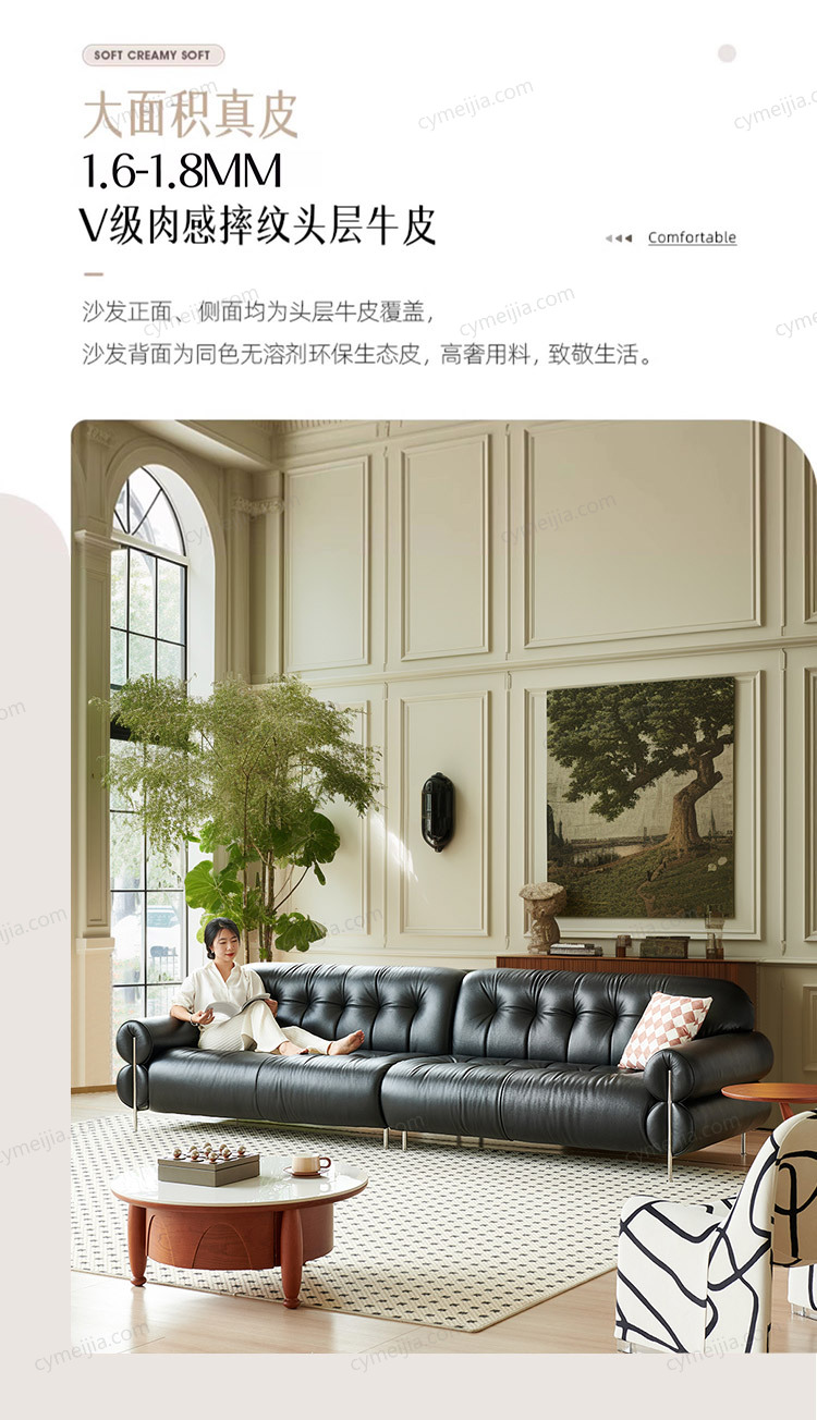 | 产品材质 : | 接触面进口头层黄牛皮+高密度海绵+俄罗斯落叶松实木框架+不锈钢五金 |