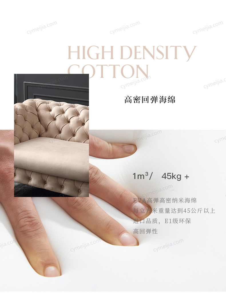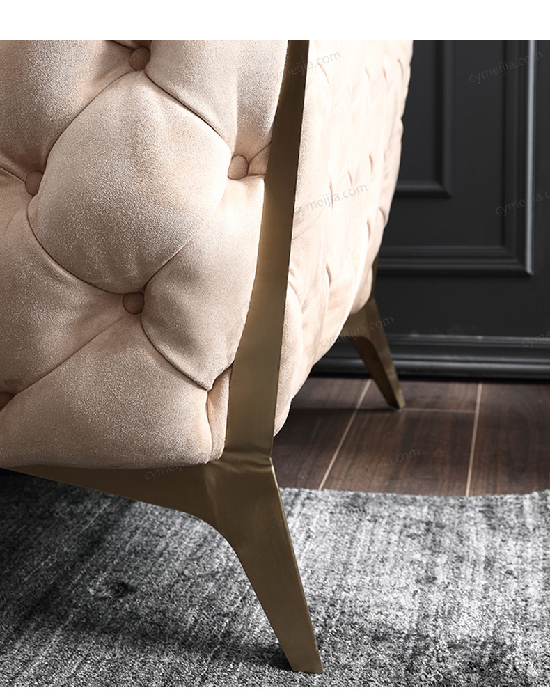 | 产品材质 : | 优质科技布+高密度海绵+俄罗斯落叶松实木框架+不锈钢镀钛金+环保多层实木板 |