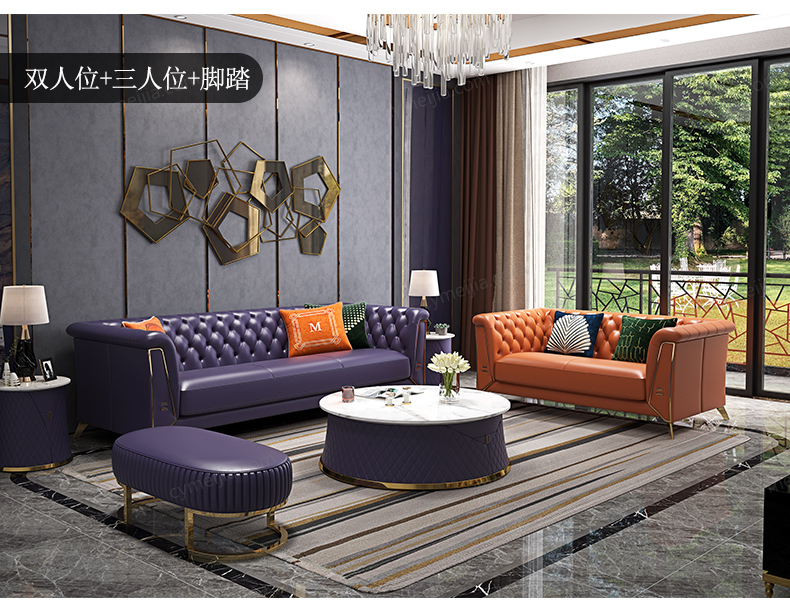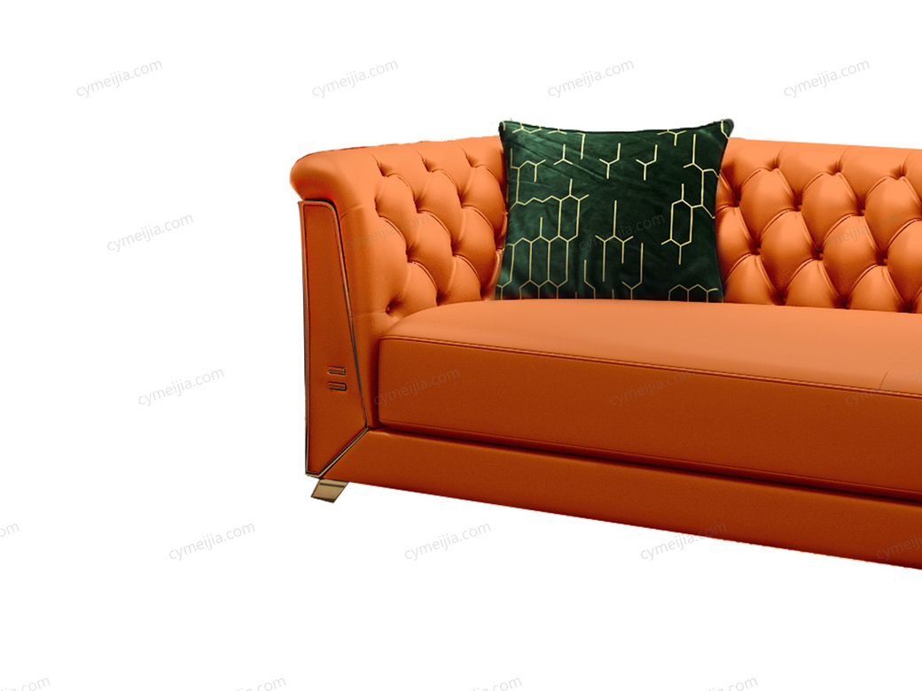 | 产品材质 : | 优质超纤皮+高密度海绵+俄罗斯落叶松实木框架+深点拉扣+不锈钢拉丝封釉镀钛金 |