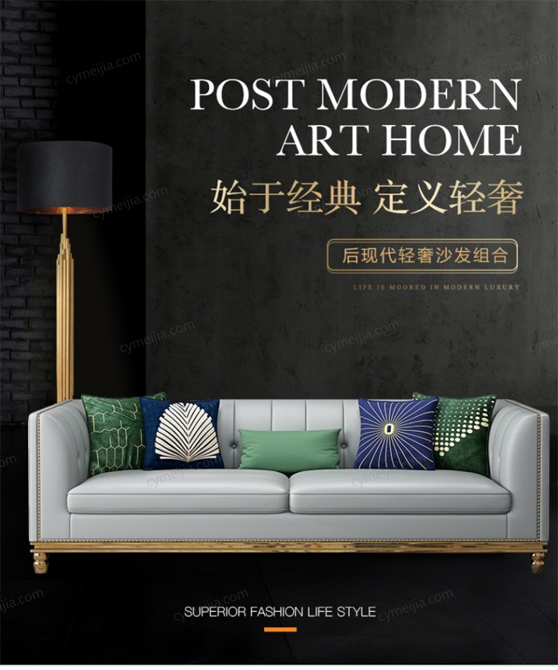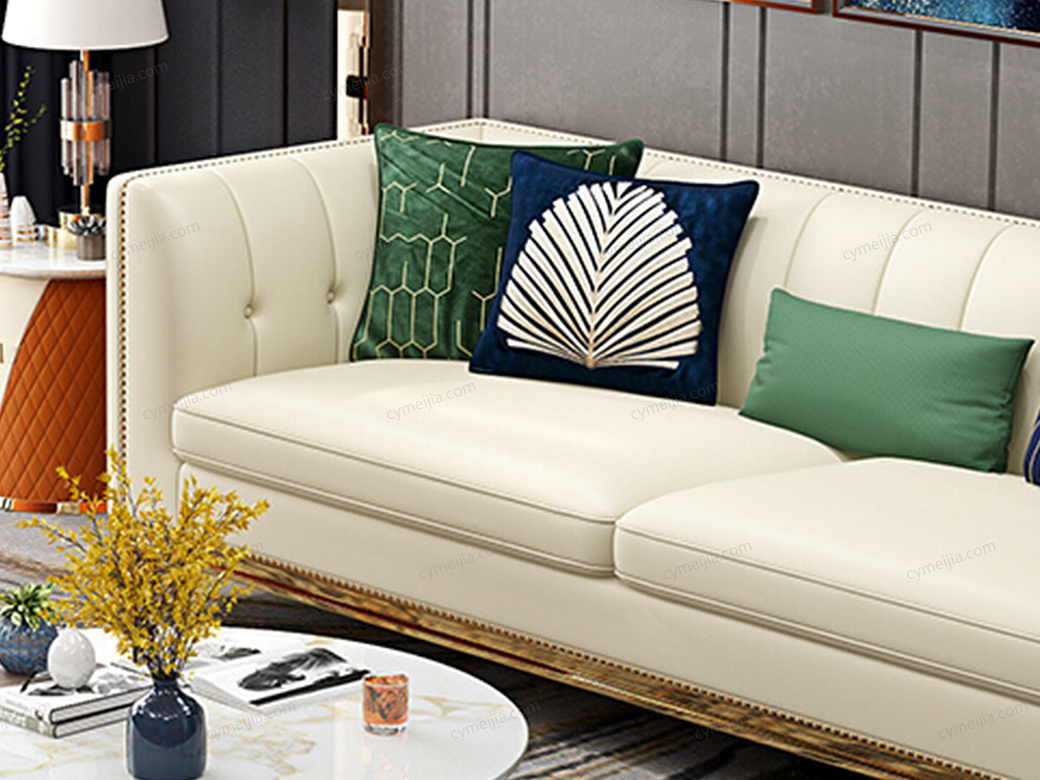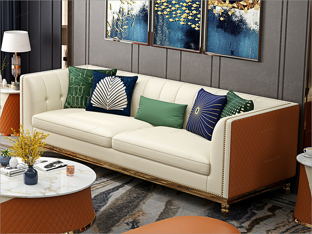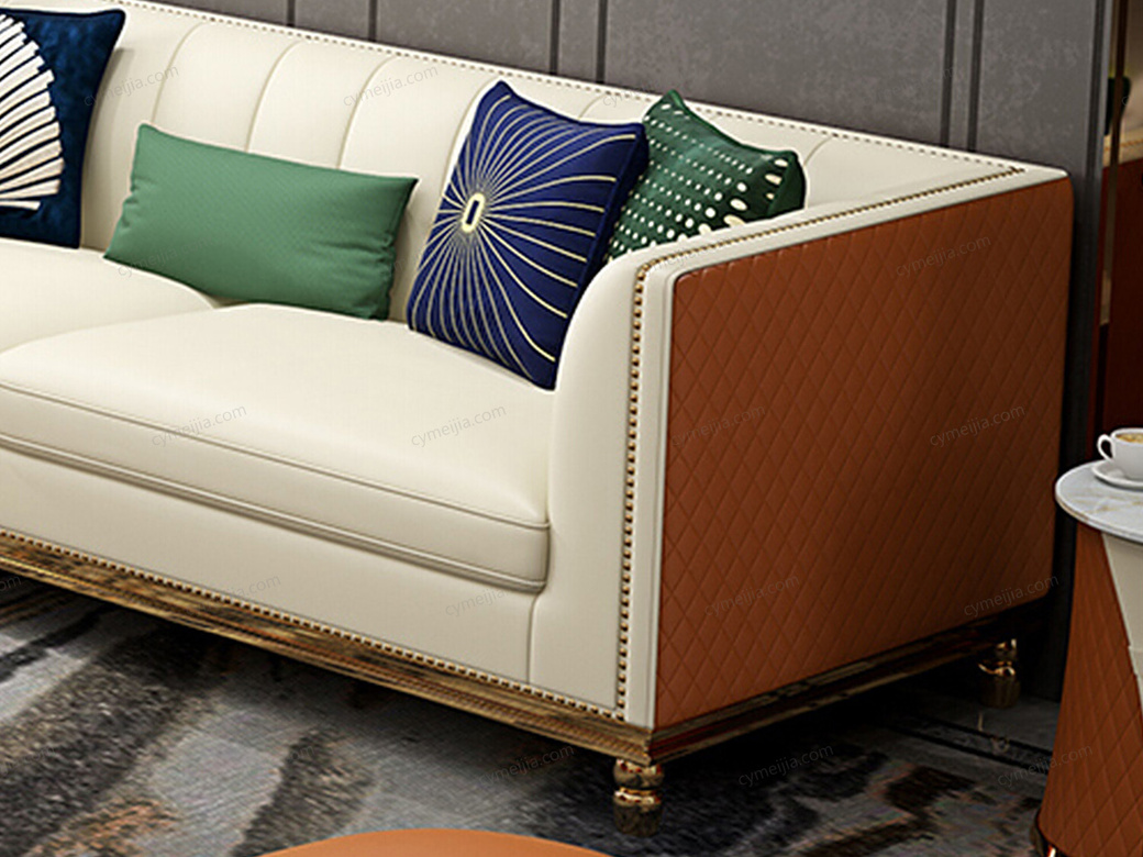 | 产品材质 : | 优质仿真皮+高密度海绵+俄罗斯落叶松实木框架+不锈钢拉丝封釉镀钛金 |