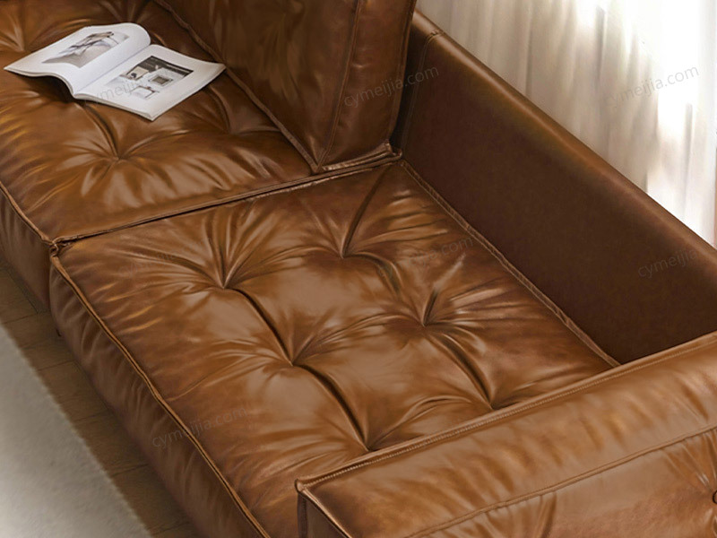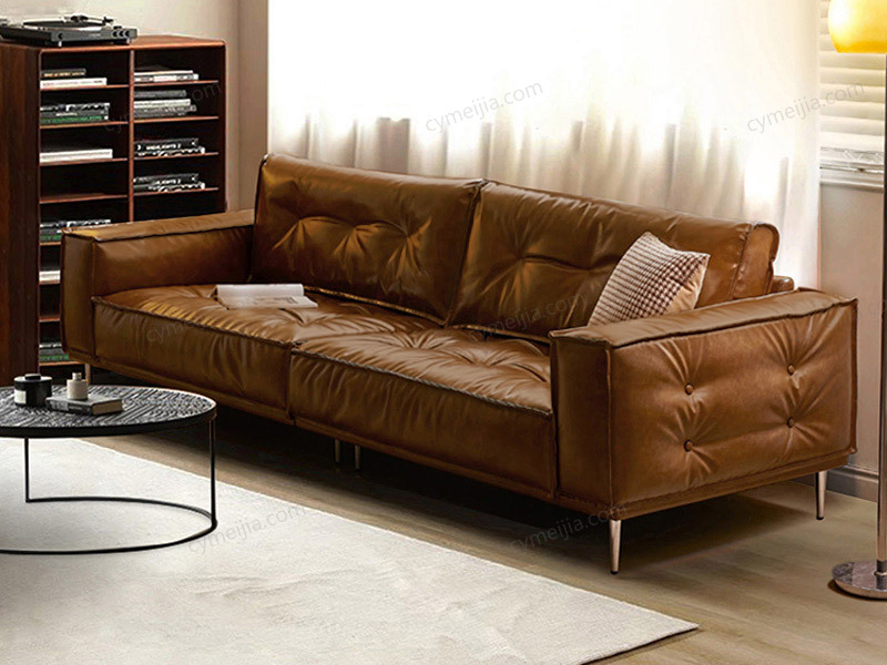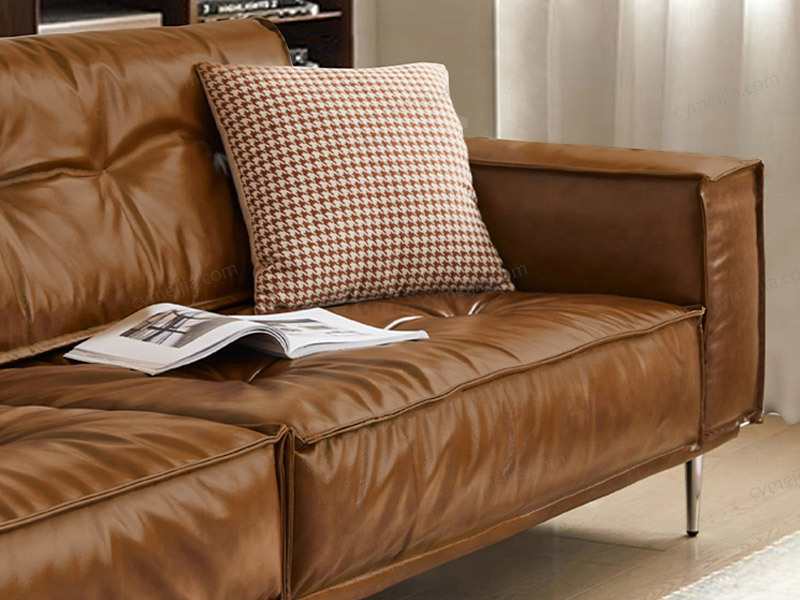 | 产品材质 : | 接触面进口头层黄牛皮+羽绒+高密度海绵+俄罗斯落叶松实木框架+碳素钢脚 |