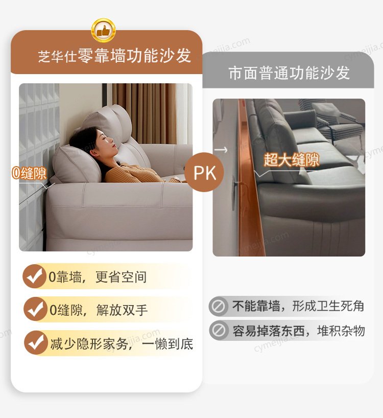 ☀ 零靠墙功能:无缝贴合墙面,更加节省空间,搭配110°-160°大角度电动调节,一键切换坐、躺、睡多种姿态。
