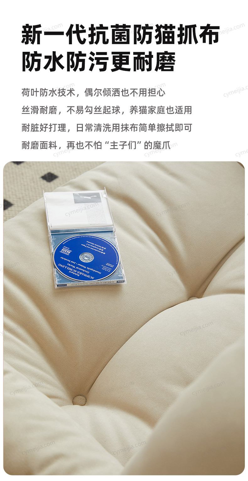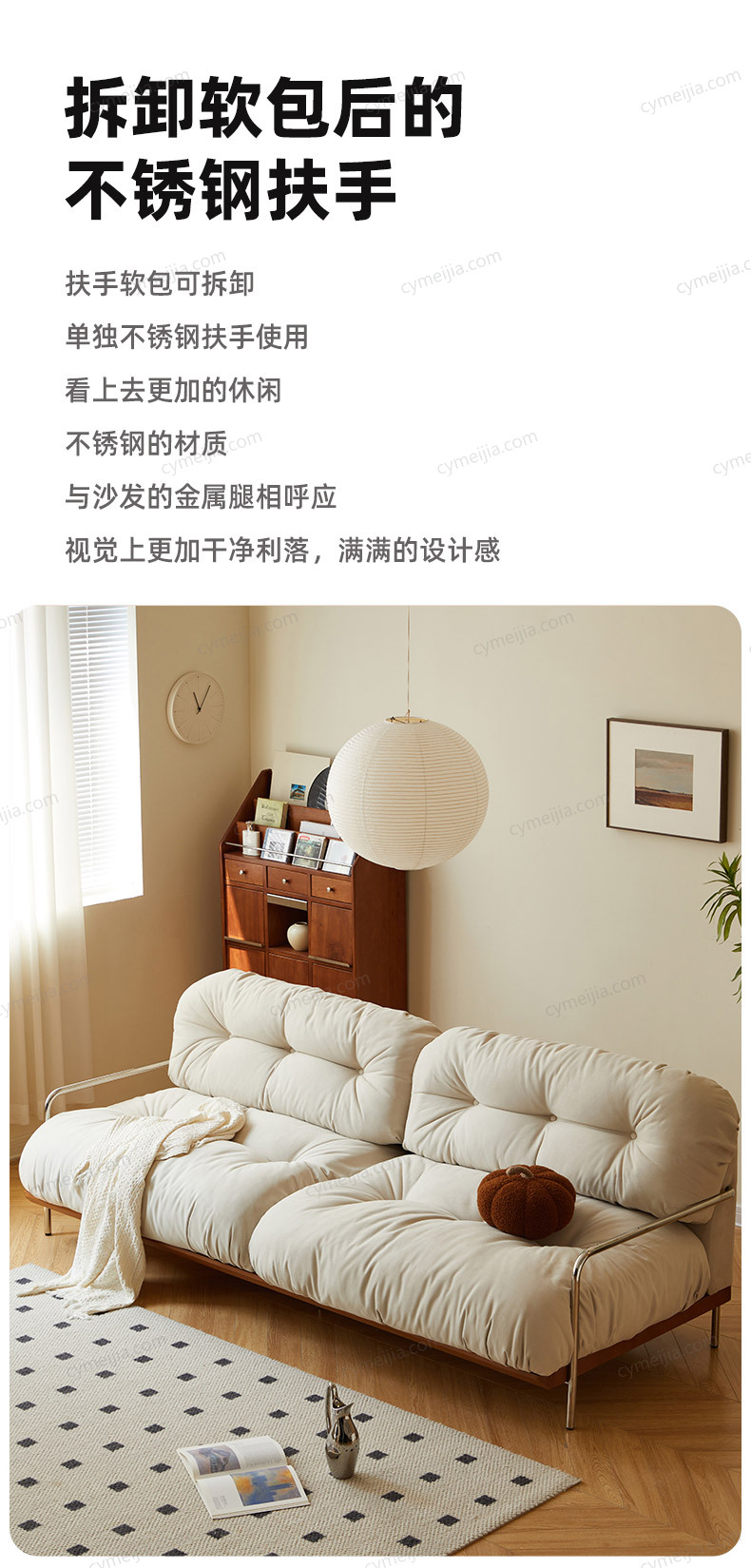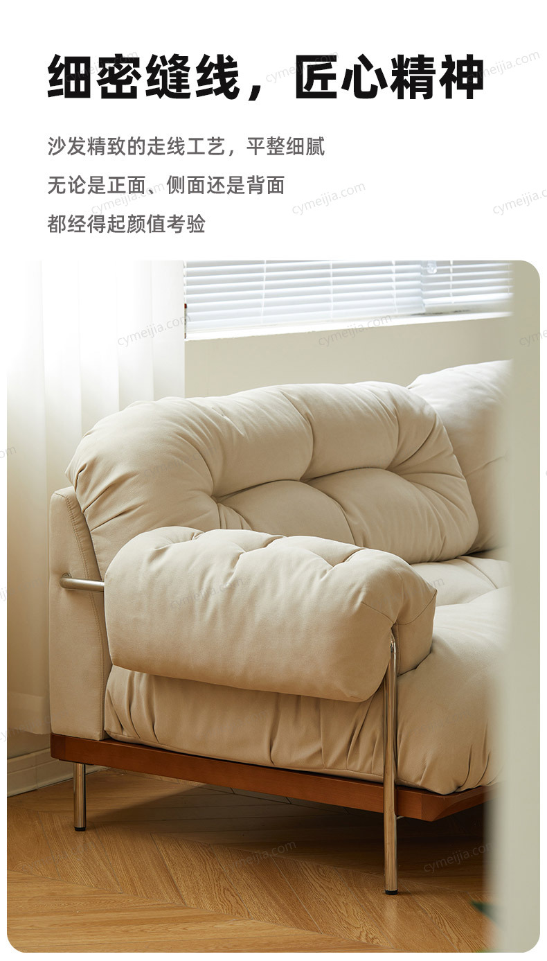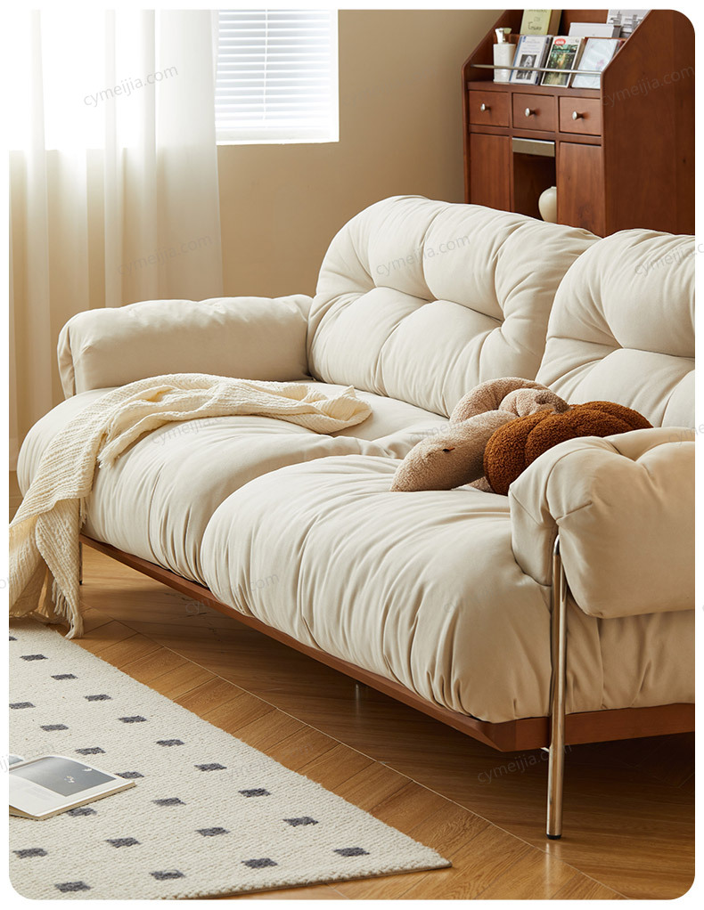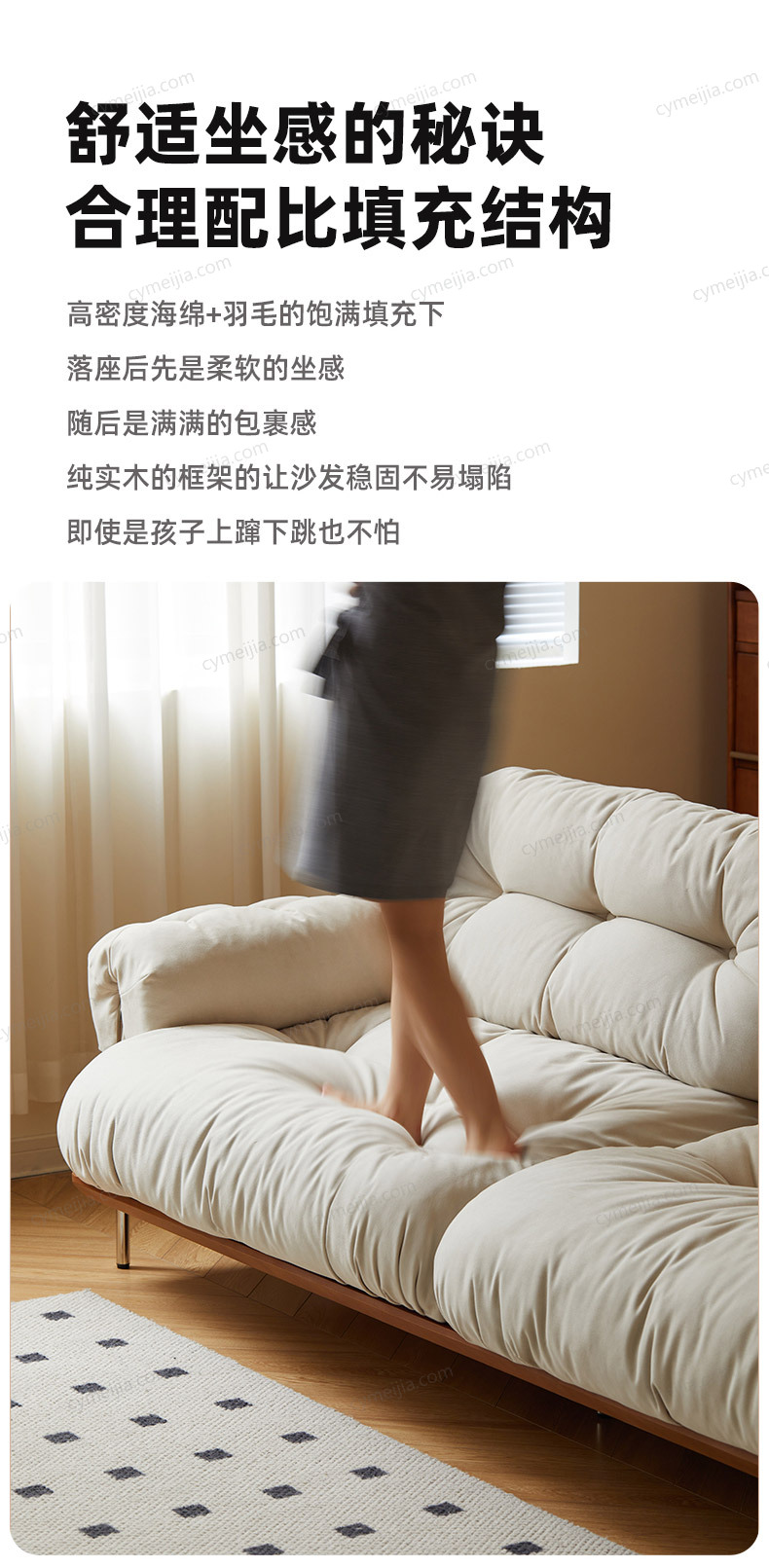 | 产品材质 : | 科技绒+羽绒+进口白蜡木框架+五金扶手+高密度海绵+公仔棉 |