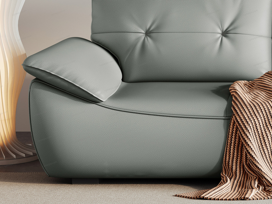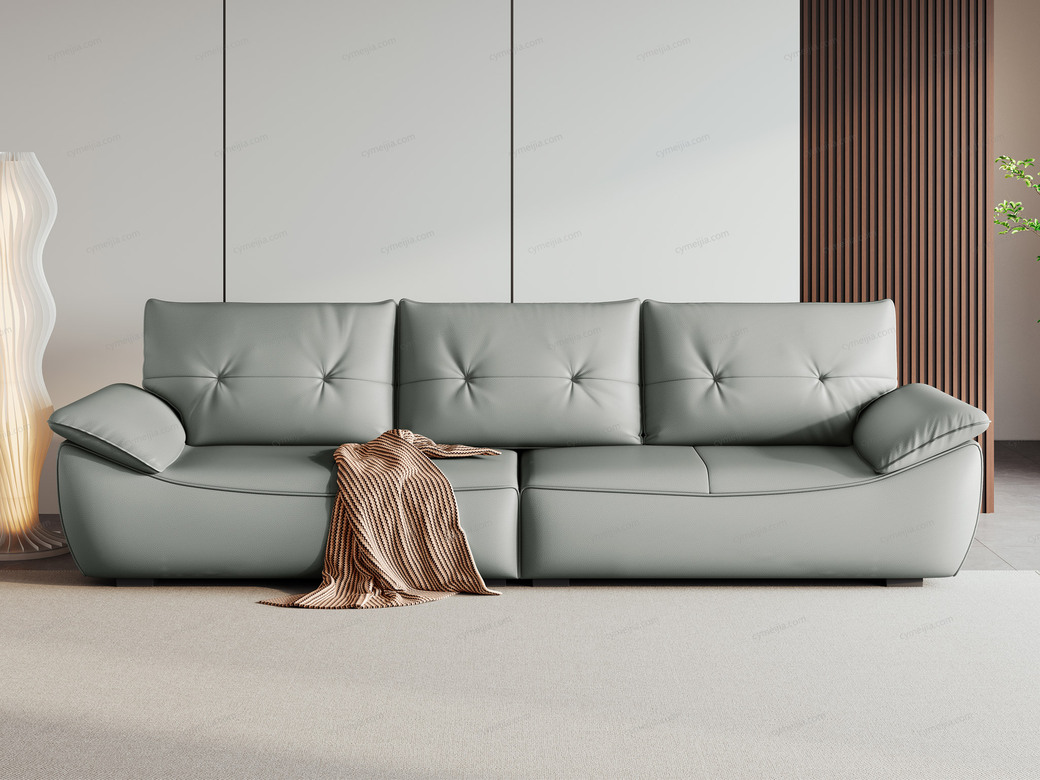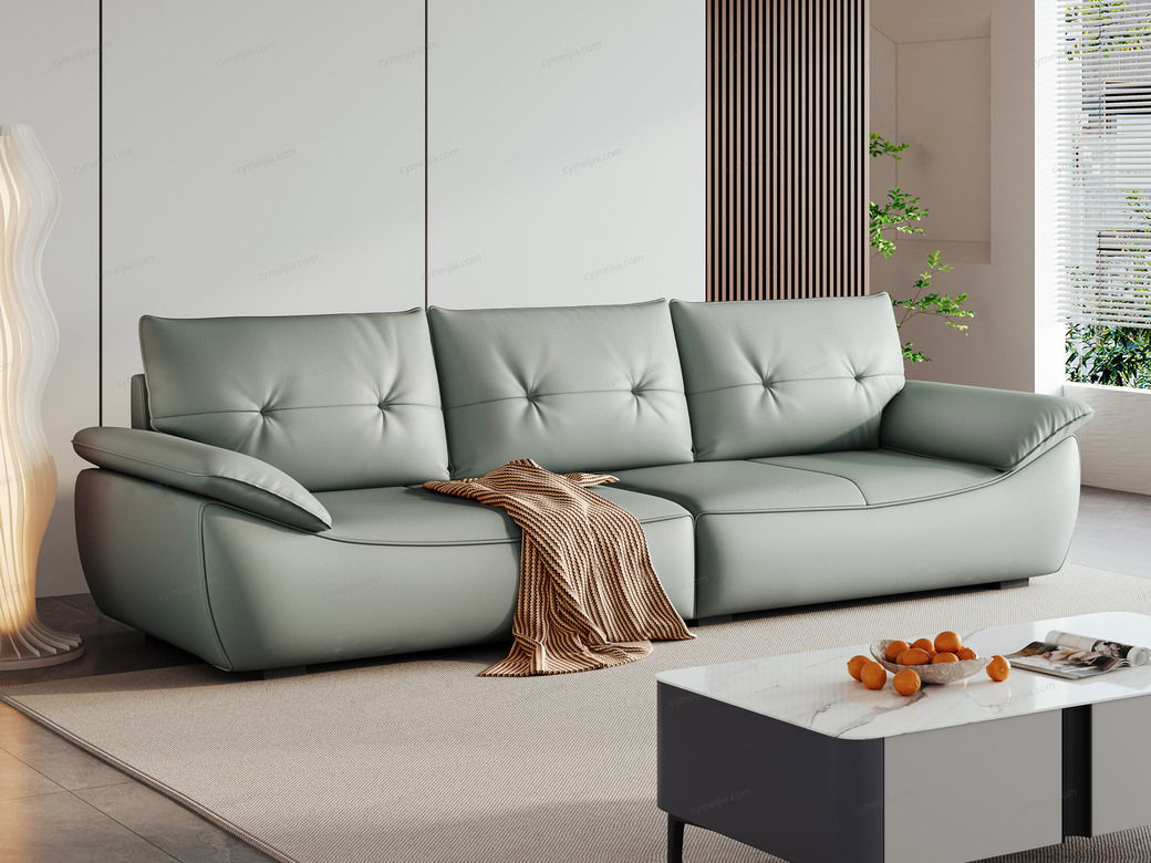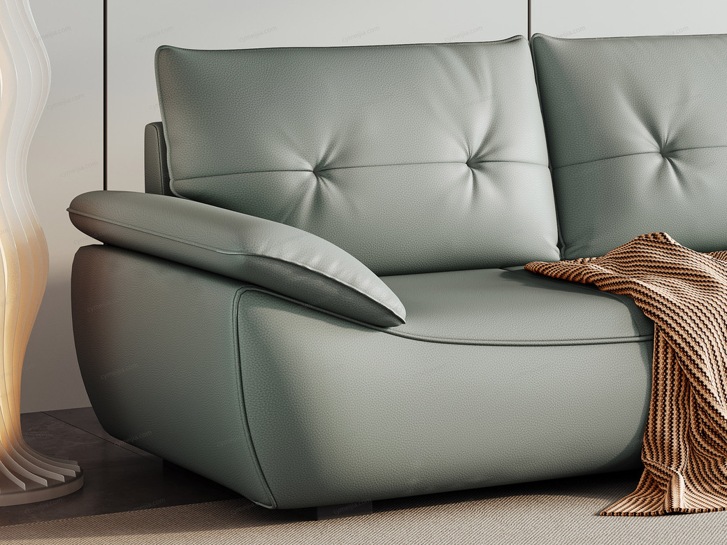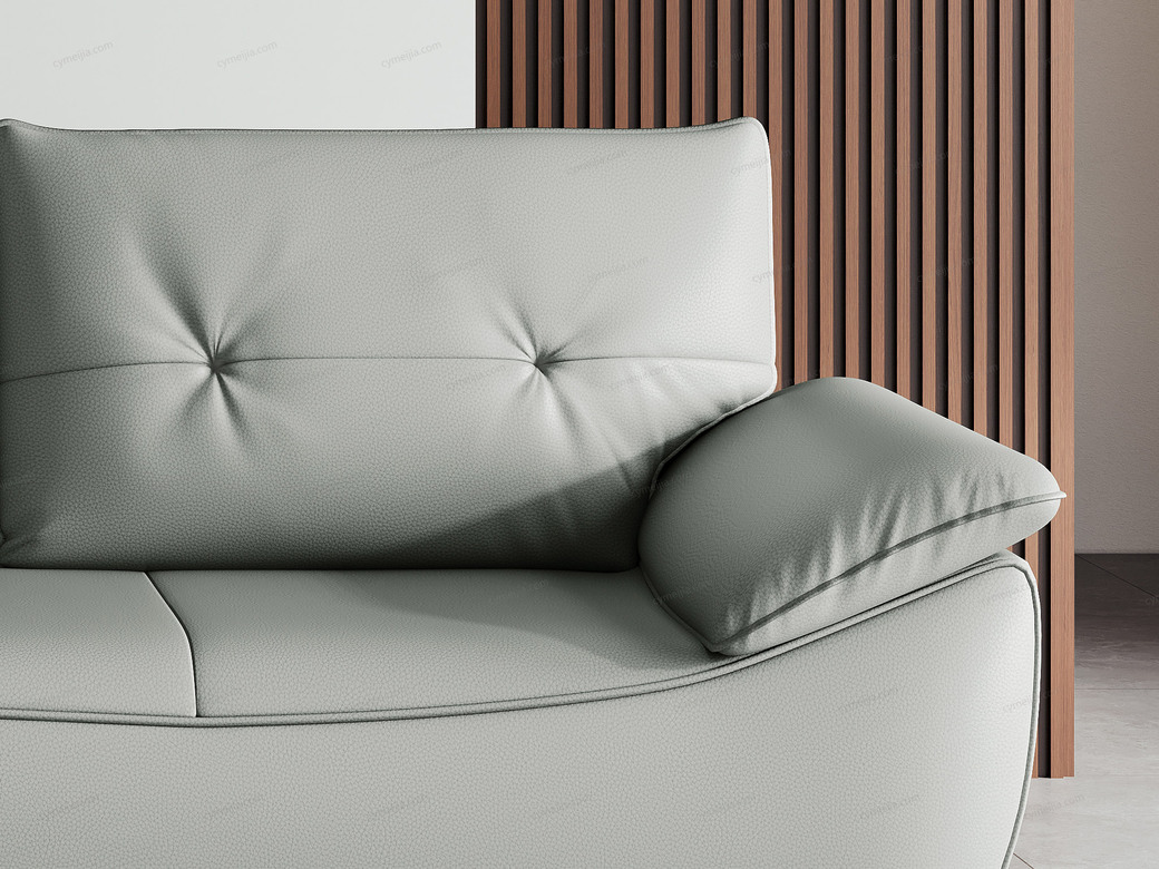 | 产品材质 : | 接触面进口头层黄牛皮+羽绒靠包+高密度海绵+俄罗斯落叶松实木框架+实木脚 |