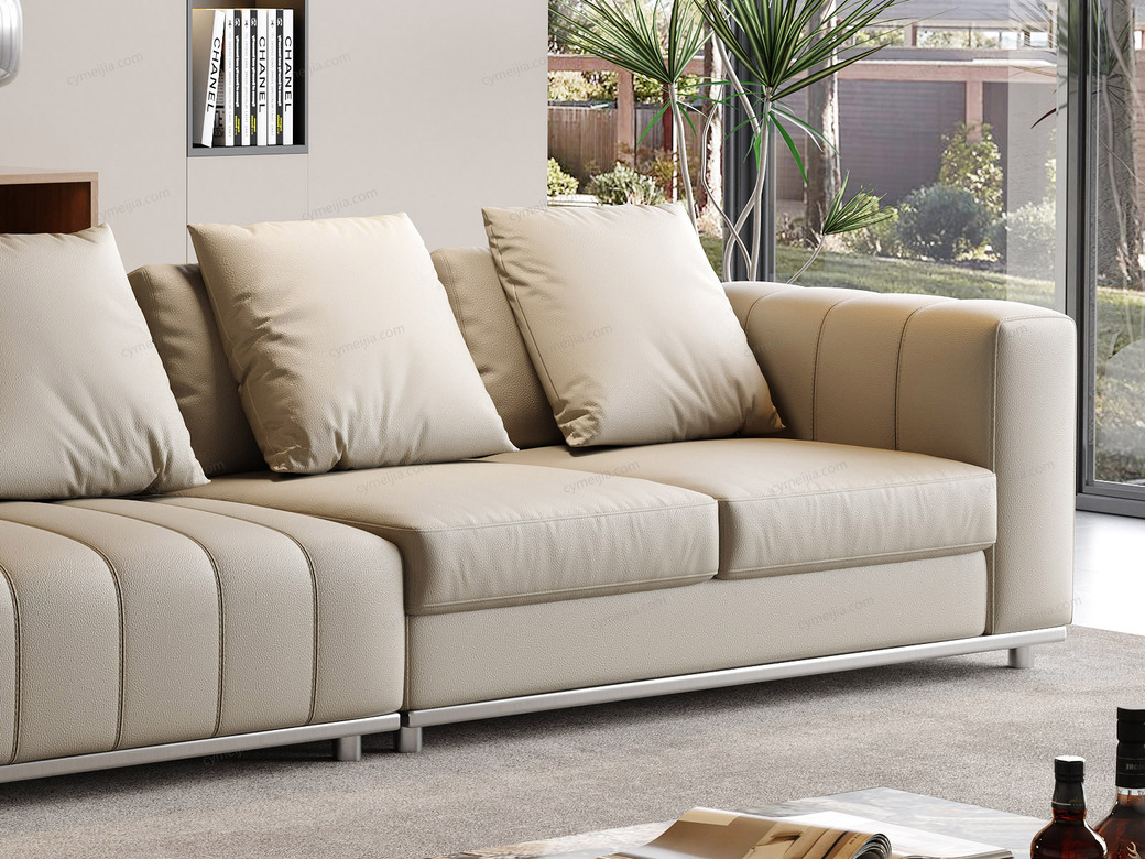 | 产品材质 : | 接触面进口头层黄牛皮+羽绒靠包+高密度海绵+俄罗斯落叶松实木框架+不锈钢底座 |