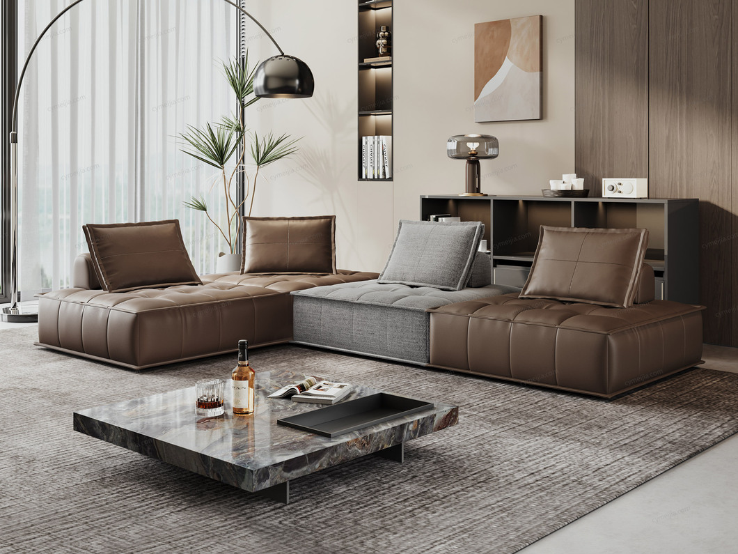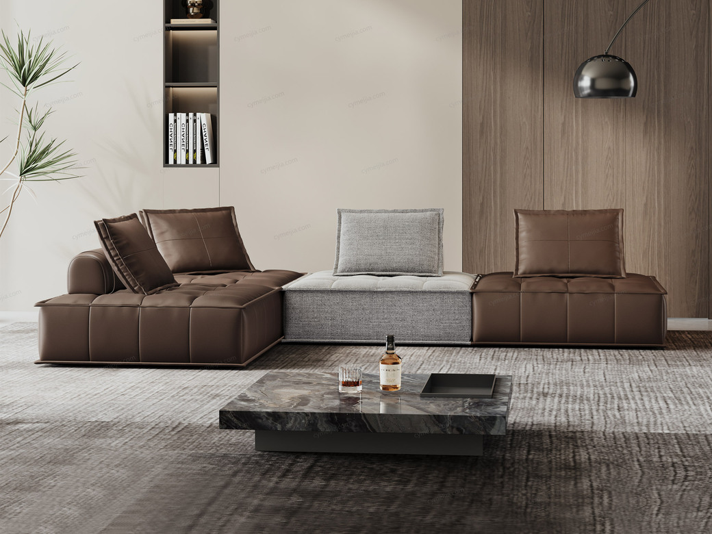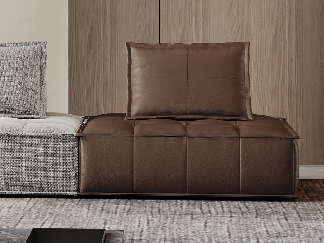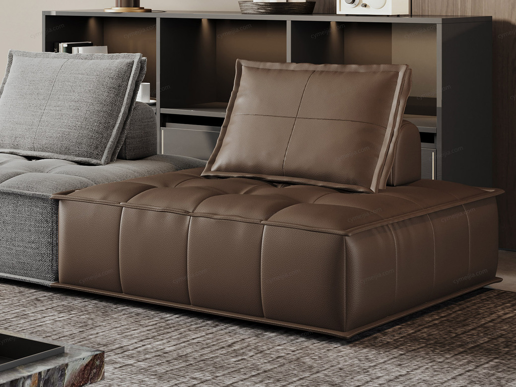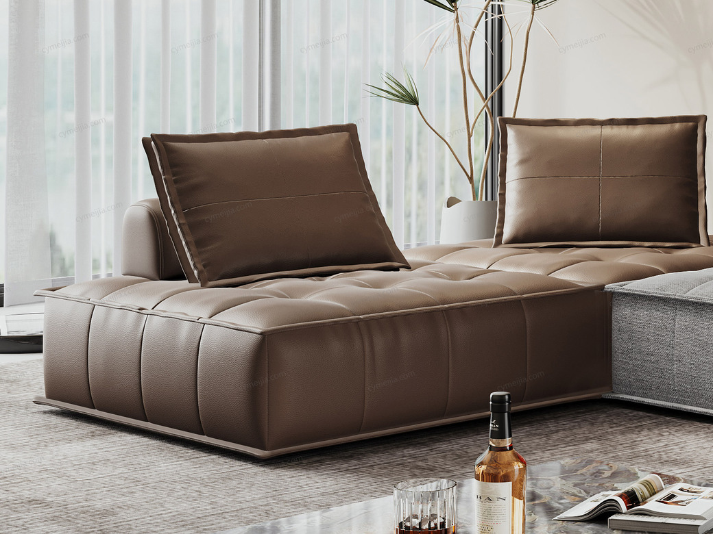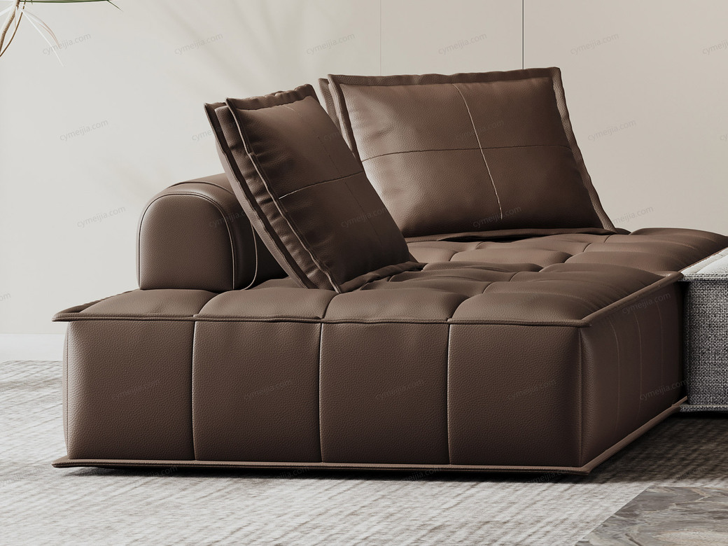 | 产品材质 : | 接触面进口头层牛皮+棉麻布+羽绒靠包+高回弹海绵+俄罗斯落叶松实木框架 |