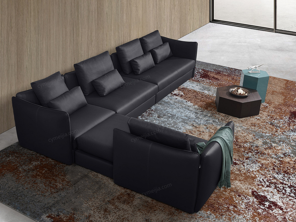 | 产品材质 : | 接触面真皮+羽绒填充靠包+落叶松框架+高回弹海绵+碳素钢脚 |