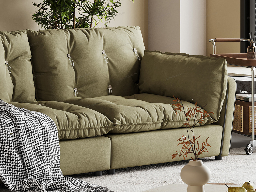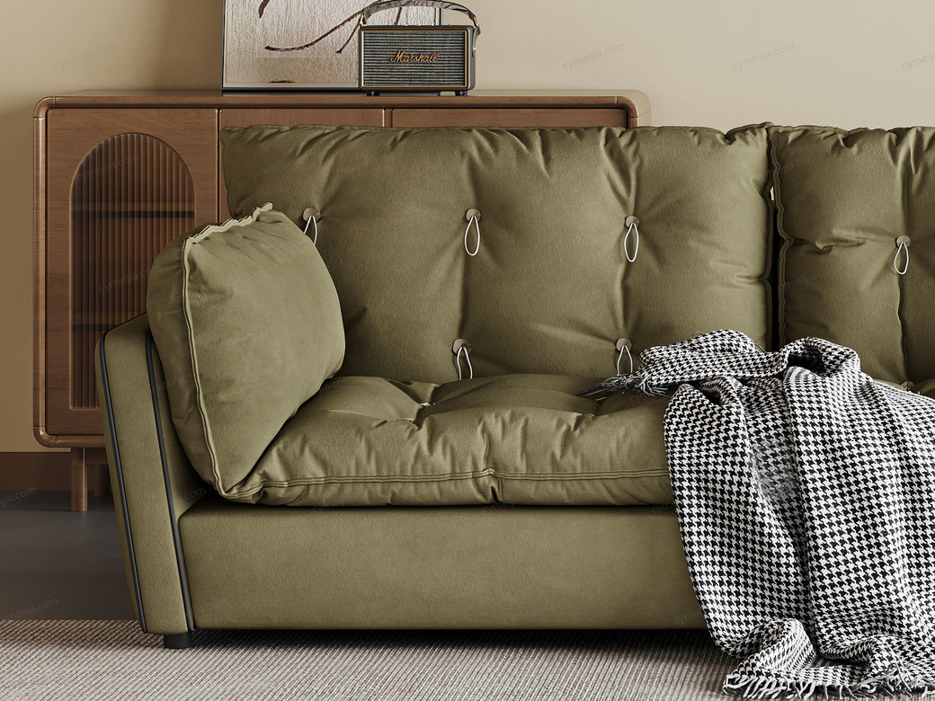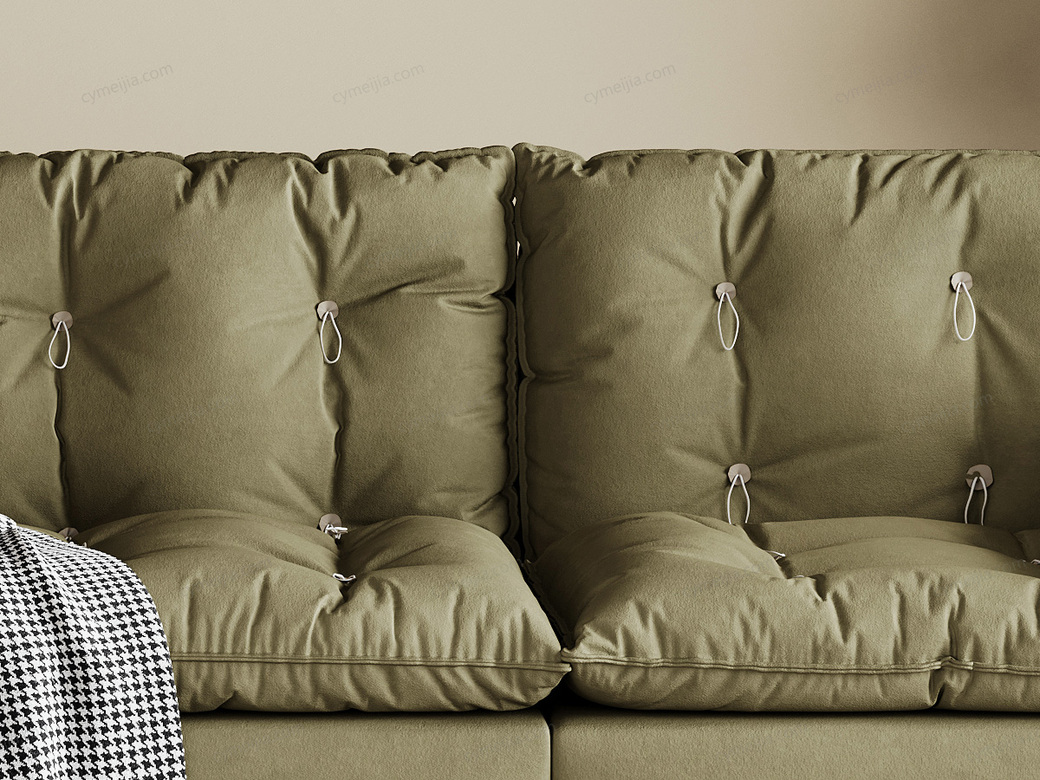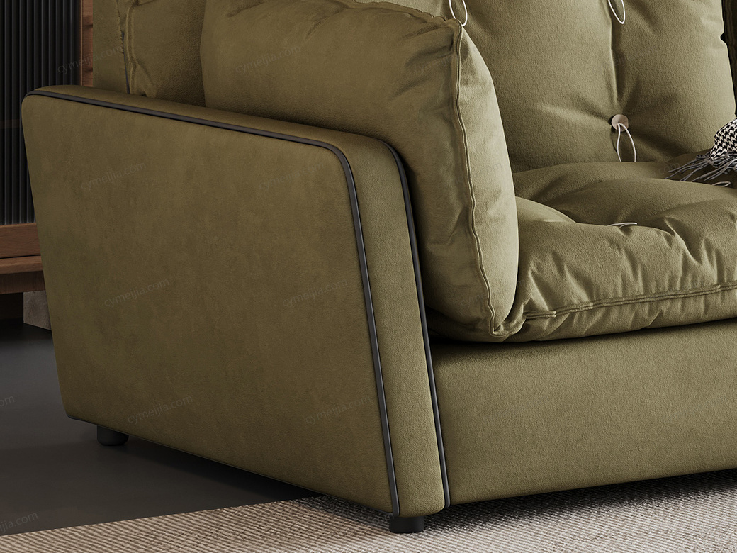 | 产品材质 : | 鹿皮绒+羽绒座包/靠包/扶手包+高密度海绵+俄罗斯落叶实木框架+5公分钛黑可调节圆脚 |