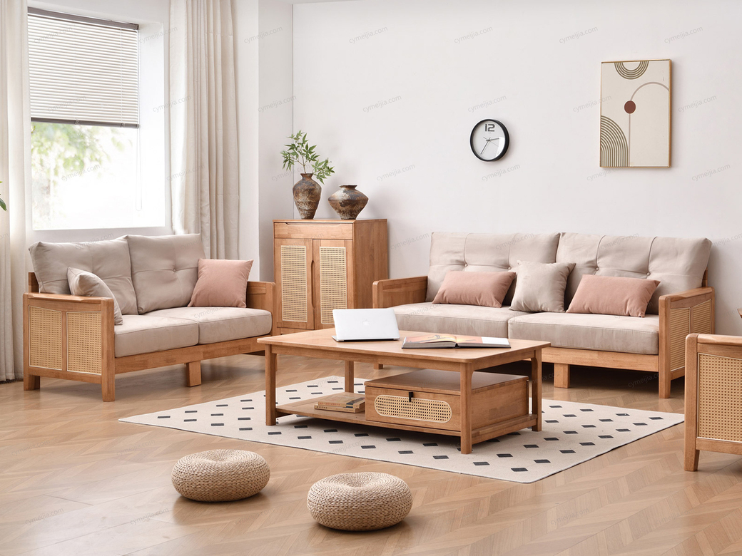 | 产品材质 : | 麂皮绒+橡胶木+海绵+藤编 |
