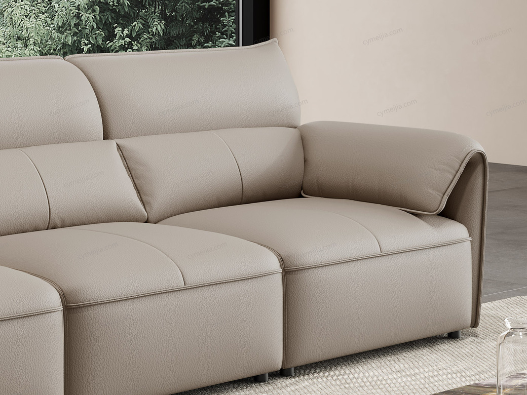 | 产品材质 : | 接触面进口头层黄牛皮+羽绒扶手/腰包+高密度海绵+俄罗斯落叶松实木框架+5分可调节金属脚 |