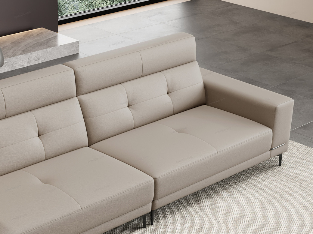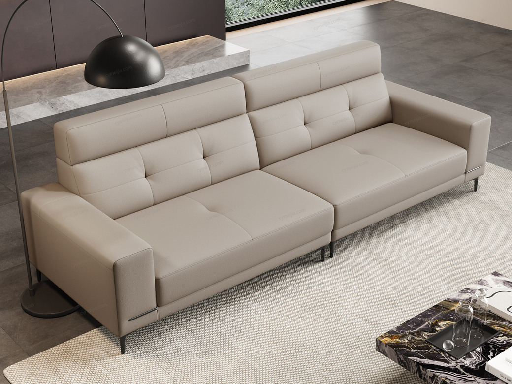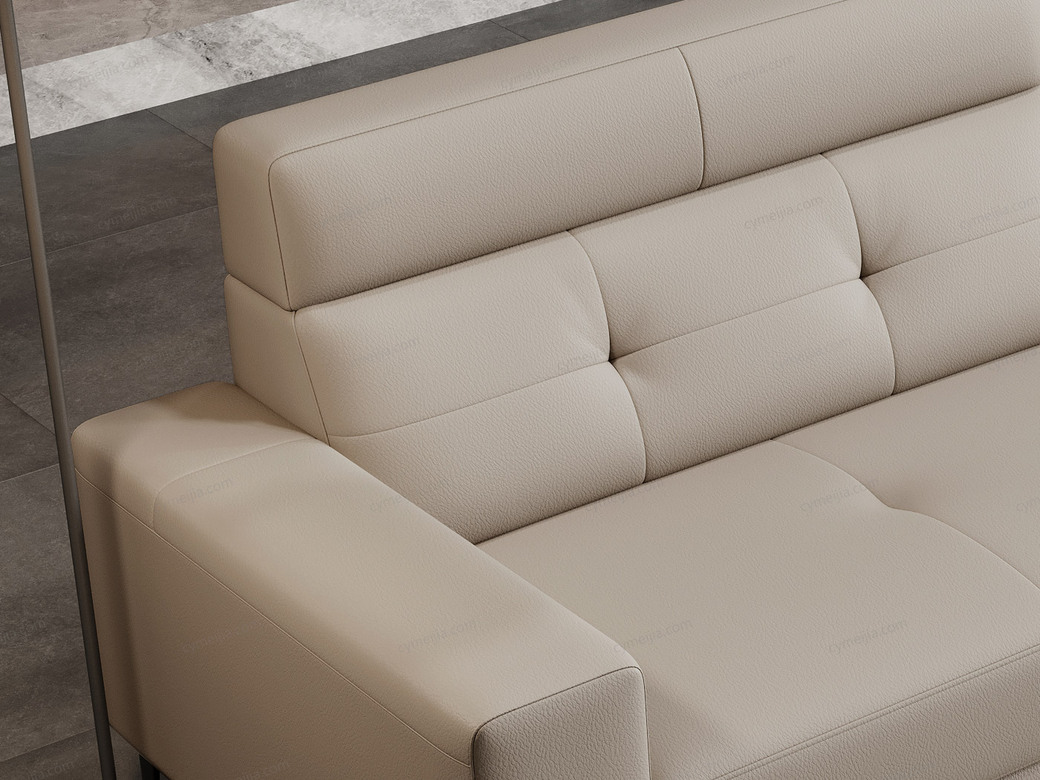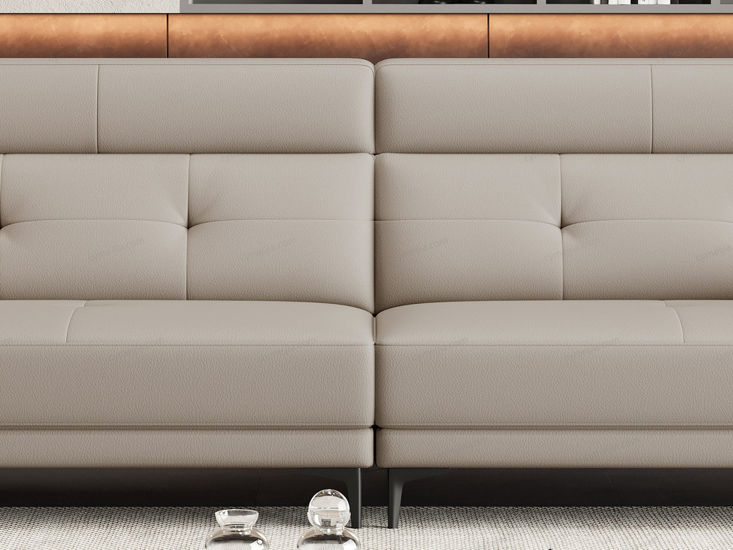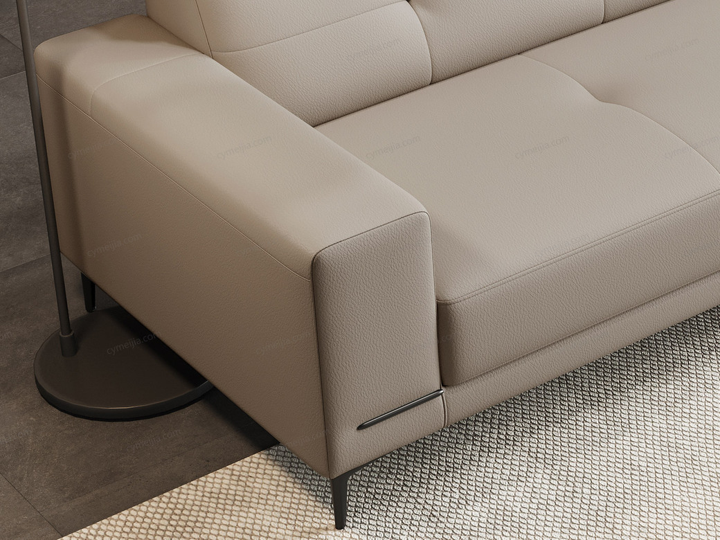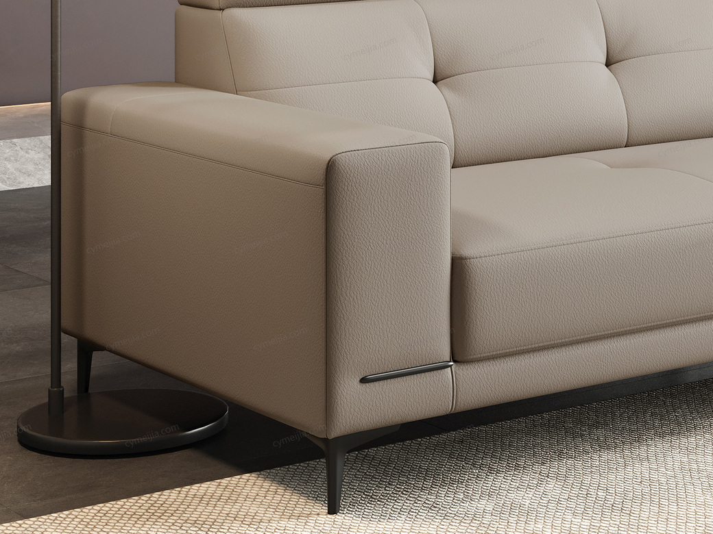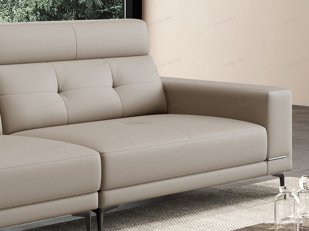 | 产品材质 : | 接触面进口头层黄牛皮+高密度海绵+俄罗斯落叶松实木框架+16分五金装饰条+12分半圆五金高脚 |