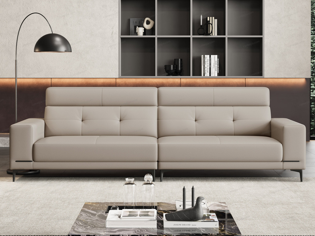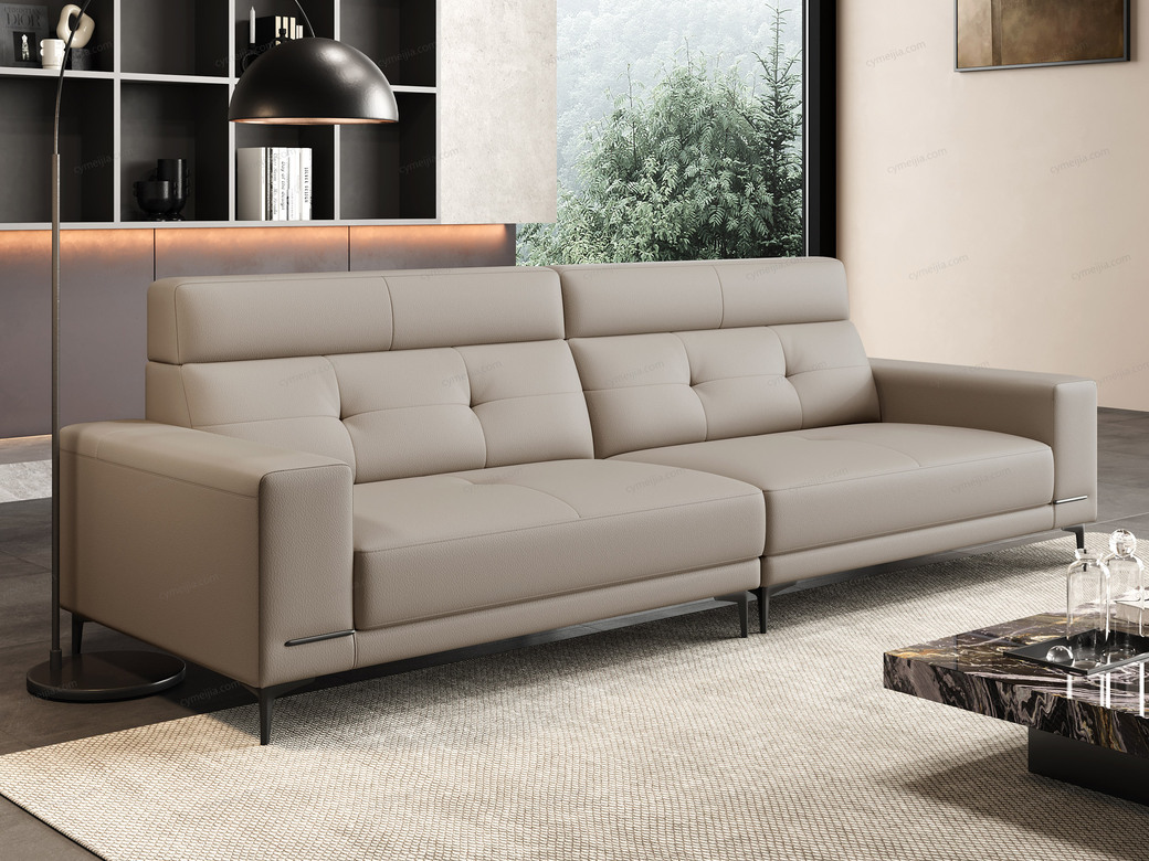 | 产品材质 : 接触面进口头层黄牛皮+高密度海绵+俄罗斯落叶松实木框架+16分五金装饰条+12分半圆五金高脚 | 包件数 : 3 | 包装体积(m3) : 1.8 | |