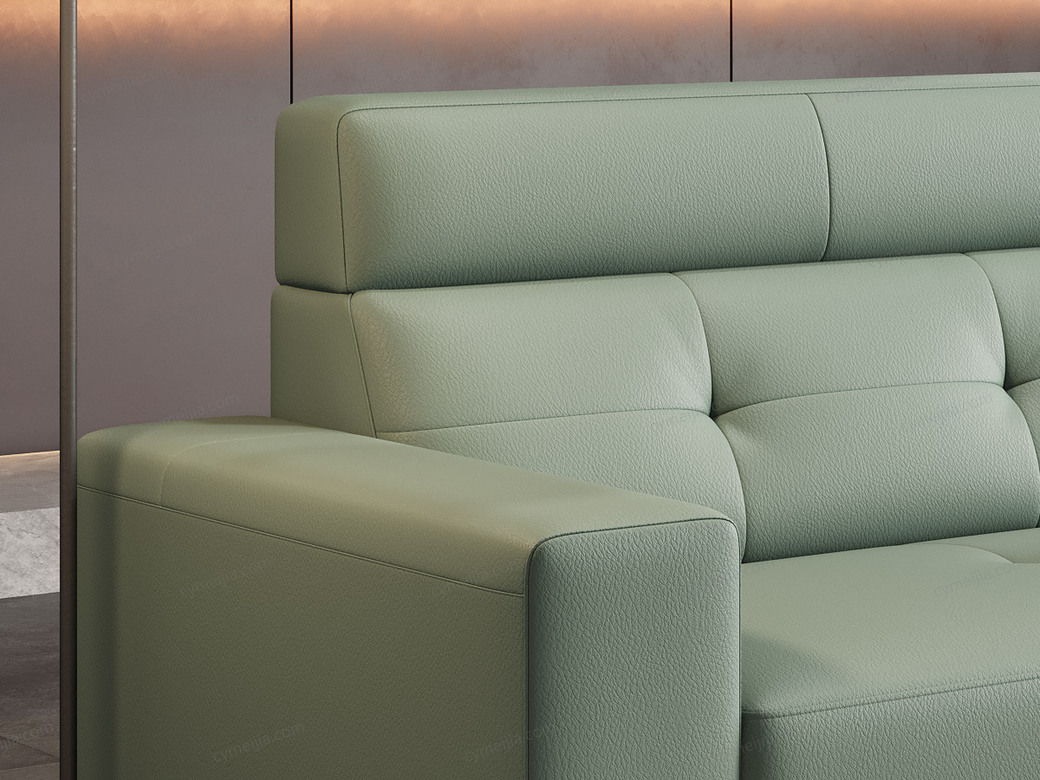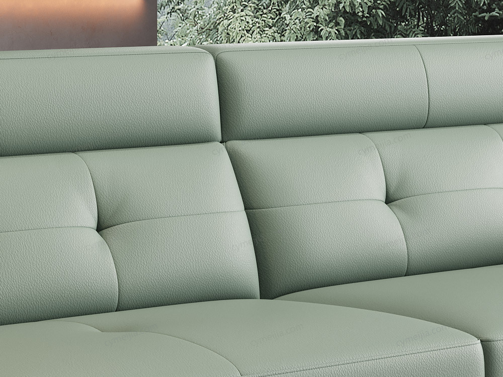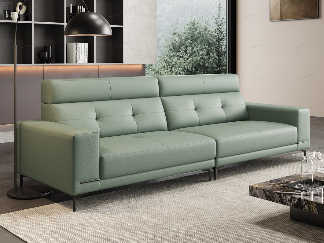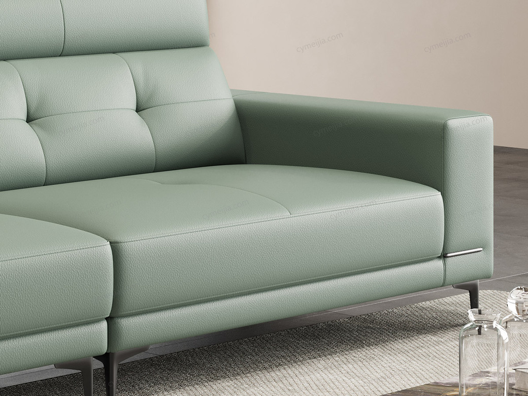 | 产品材质 : | 接触面进口头层黄牛皮+高密度海绵+俄罗斯落叶松实木框架+16分五金装饰条+12分半圆五金高脚 |