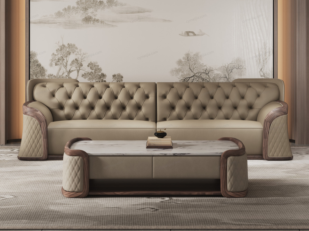 | 产品材质 : 接触面进口头层黄牛皮+进口加蓬乌金木+高密度海绵+俄罗斯落叶松实木框架 | 包件数 : 2 | 包装体积(m3) : 5.04 | |