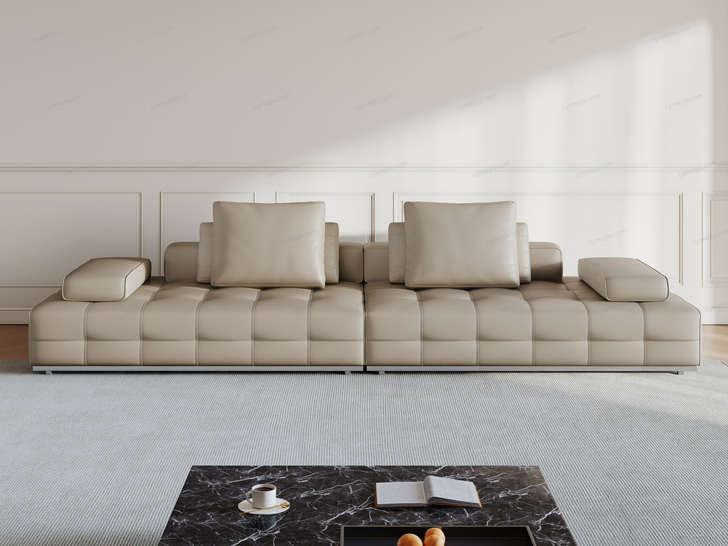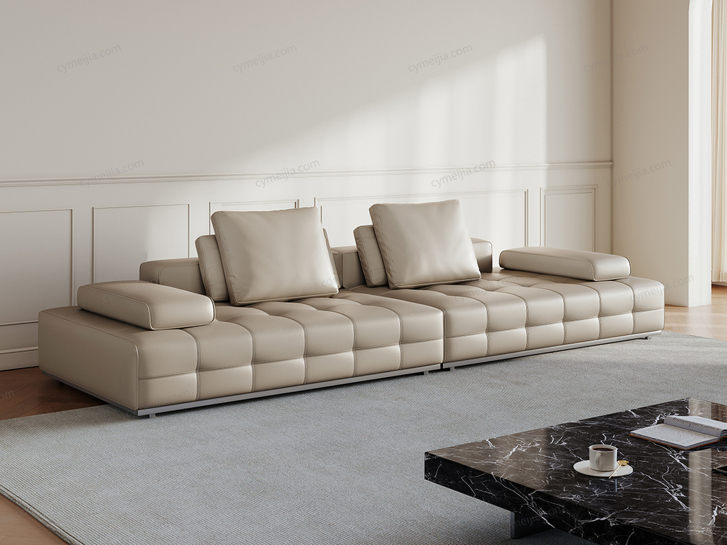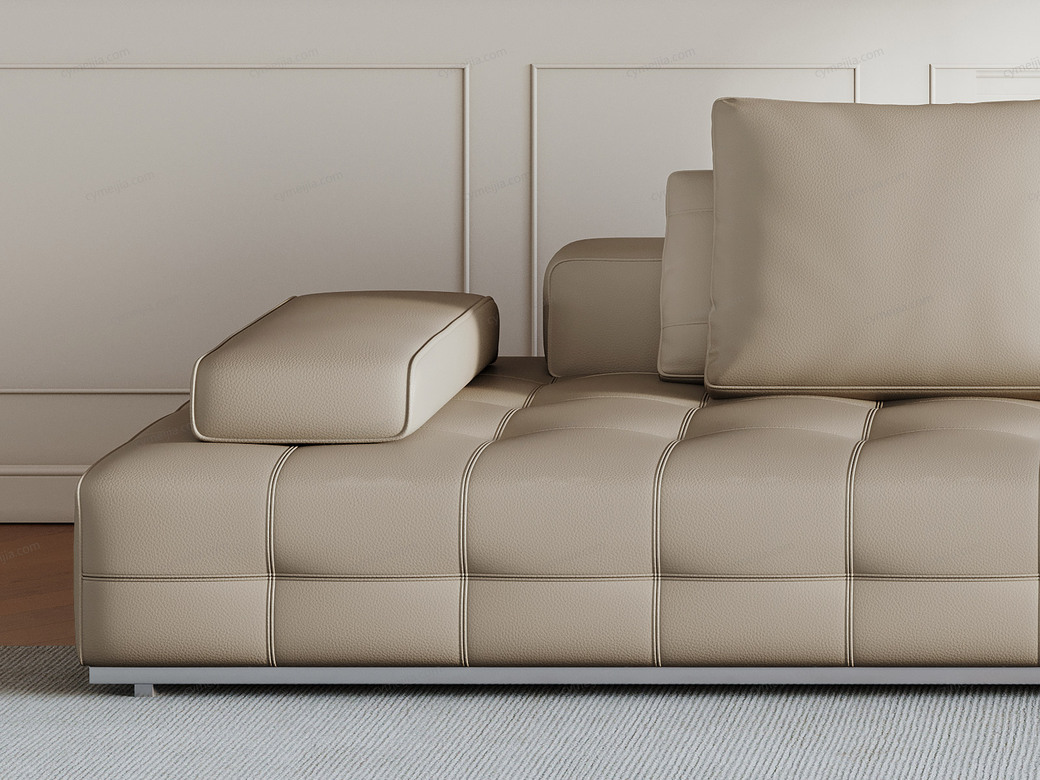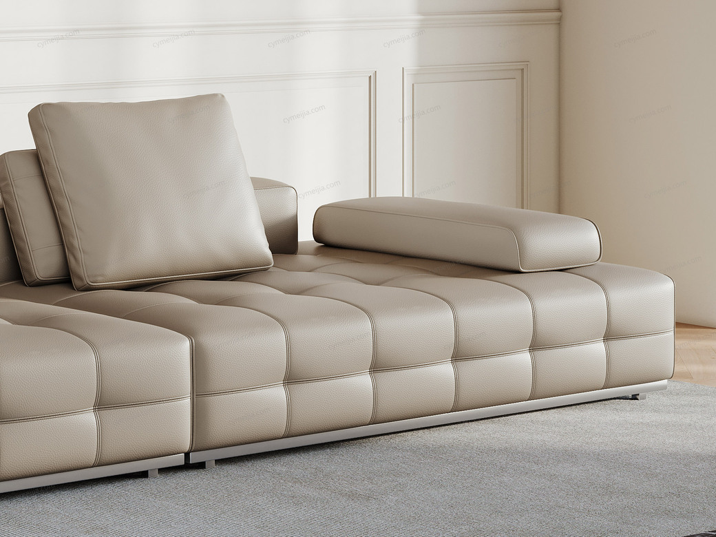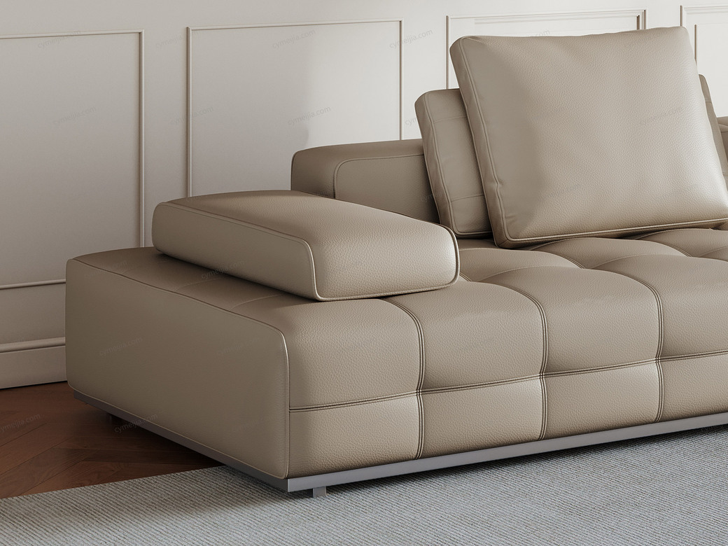 | 产品材质 : | 接触面进口头层黄牛皮+羽绒靠包+高密度海绵+俄罗斯落叶松实木框架+拉丝不锈钢底架 |